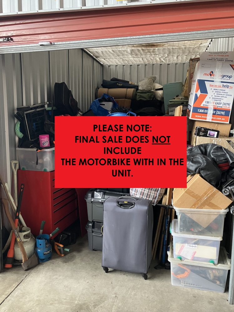 *******PLEASE NOTE THE MOTORBIKE WITH IN THE UNIT IS NOT INCLUDED IN THE FINAL SALE.*******