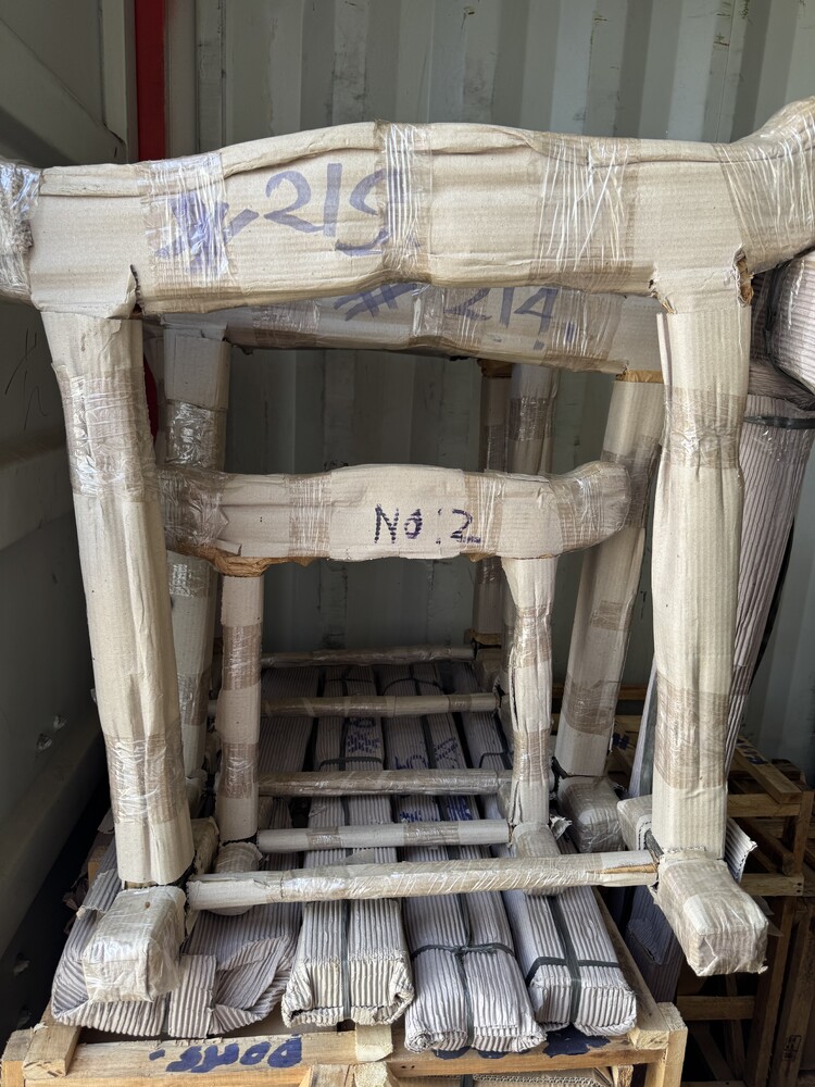 Imported Balinese furniture etc - most of it is still in transport packaging. Most of it seems to be timber. There are 2 timber bench seats. The rest is hard to know as its all wrapped up.