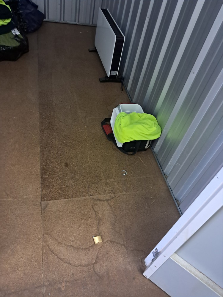 Shoe rack, lunch box, hi vis vest and heater