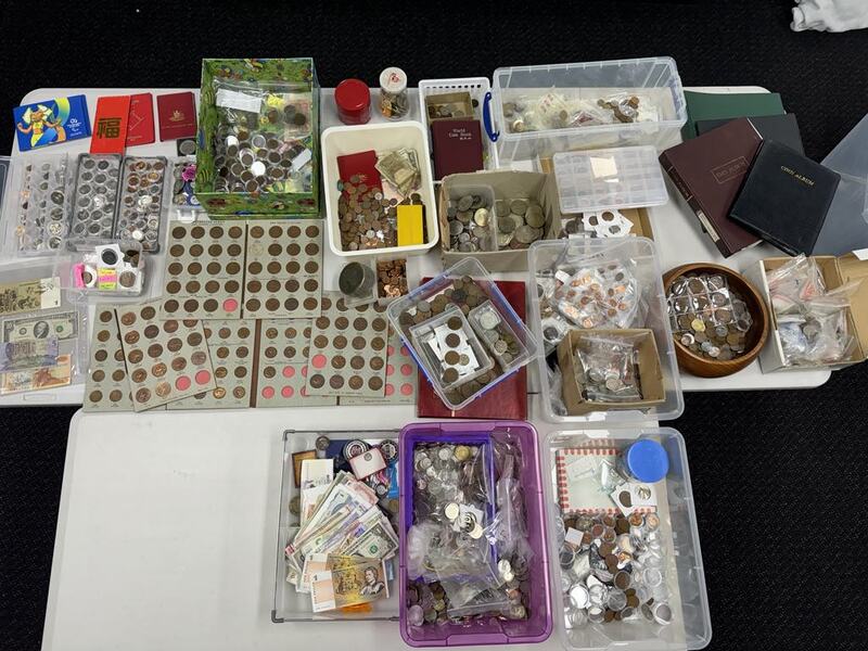 Large collection of coins and banknotes