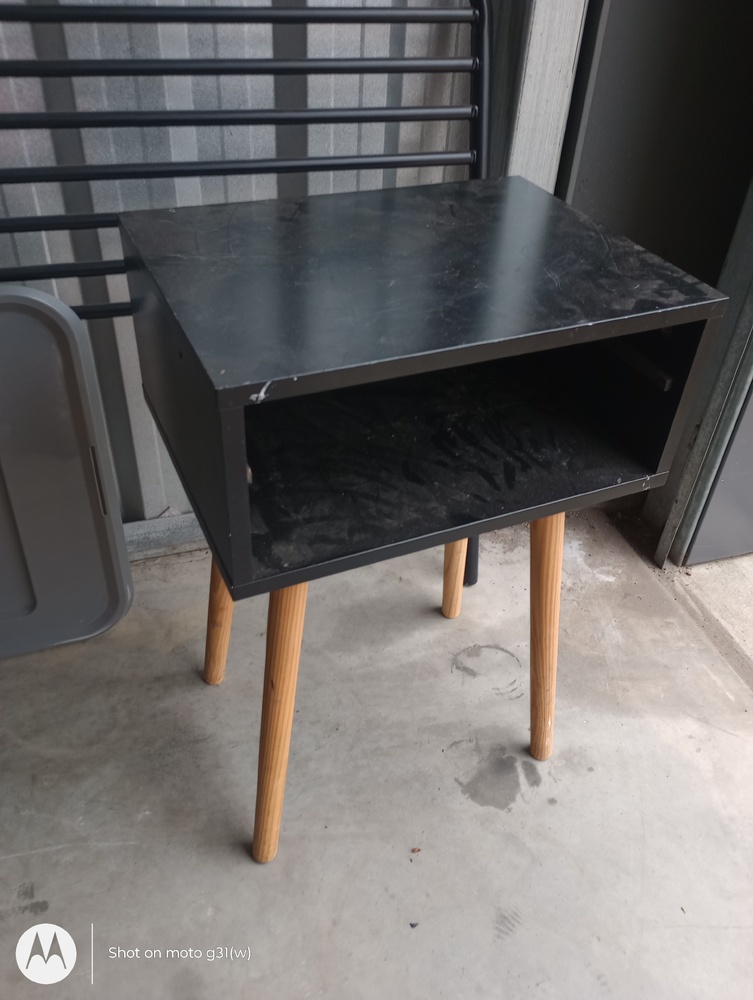 1x washing machine, wooden table + chairs, side drawers, display shelves, side table, tin full of Coles mini collectables, used mattress, bags of clothes, pile of blankets, bedding, assorted miscellaneous items