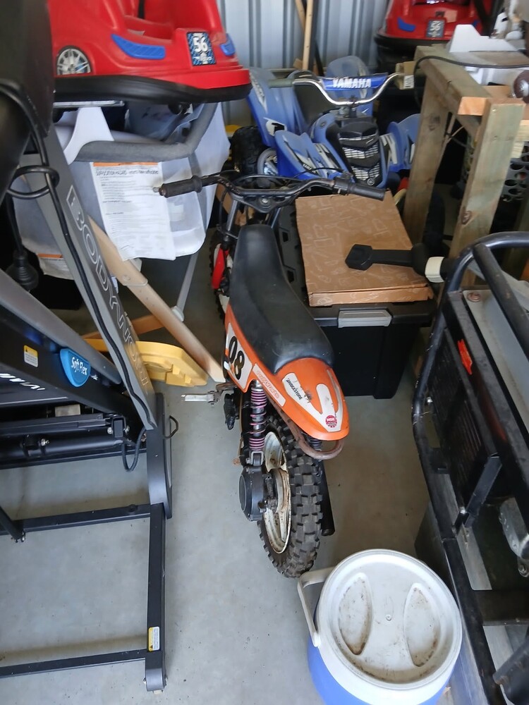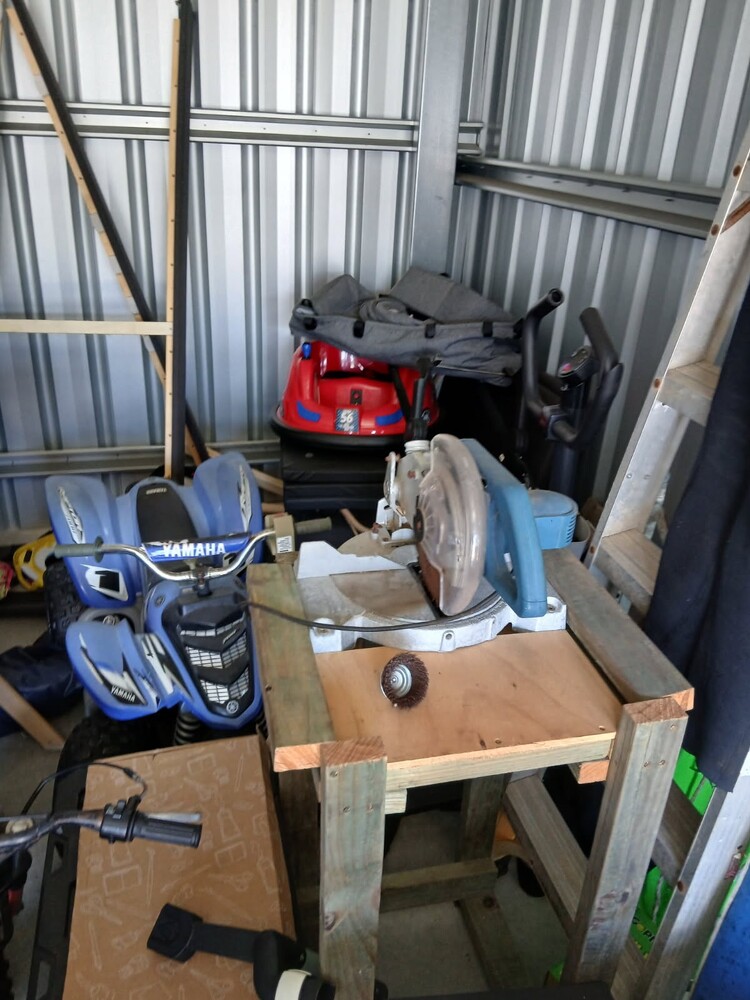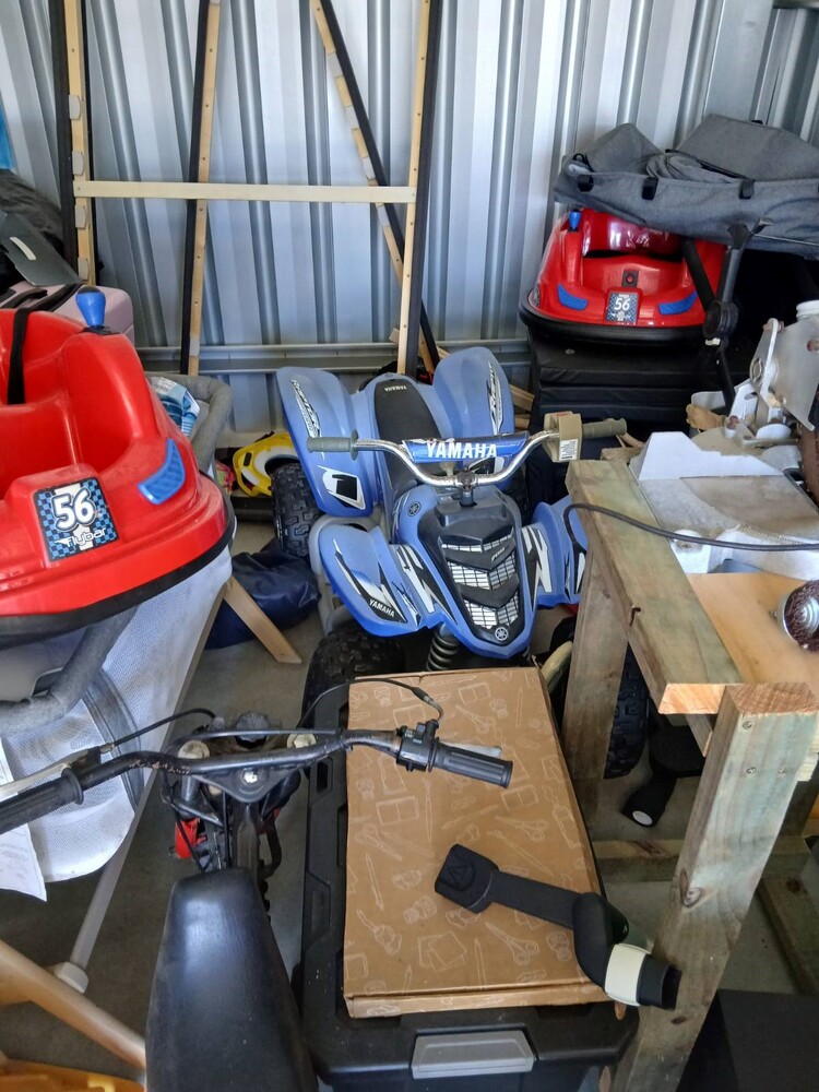 Power tools, Swag, single seat couch, kids 4 wheel motorbike, kids 50 motorbike, stand up paddle board, step ladder, ladder, treadmill.
