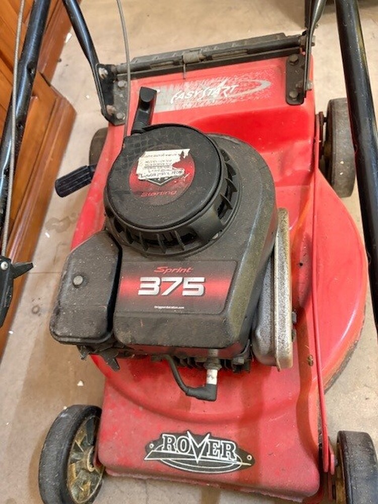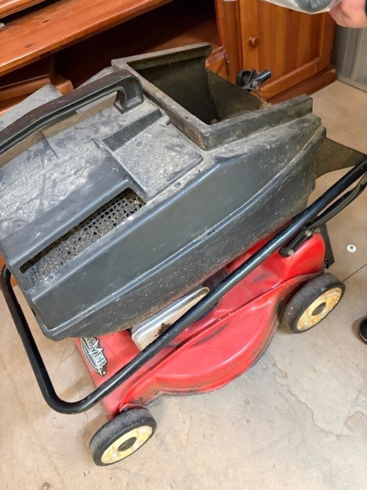 Large timber wall unit in good condition, lawn mower, QS mattress, set of draws