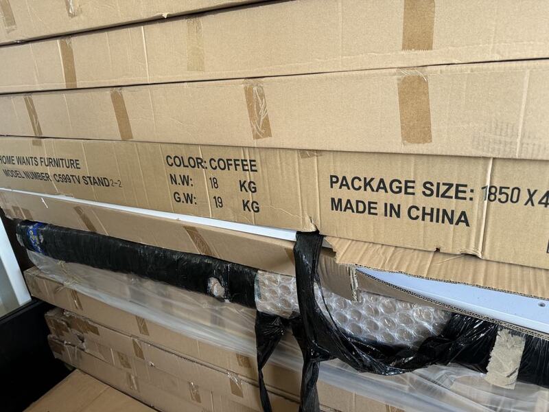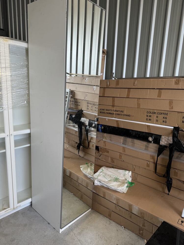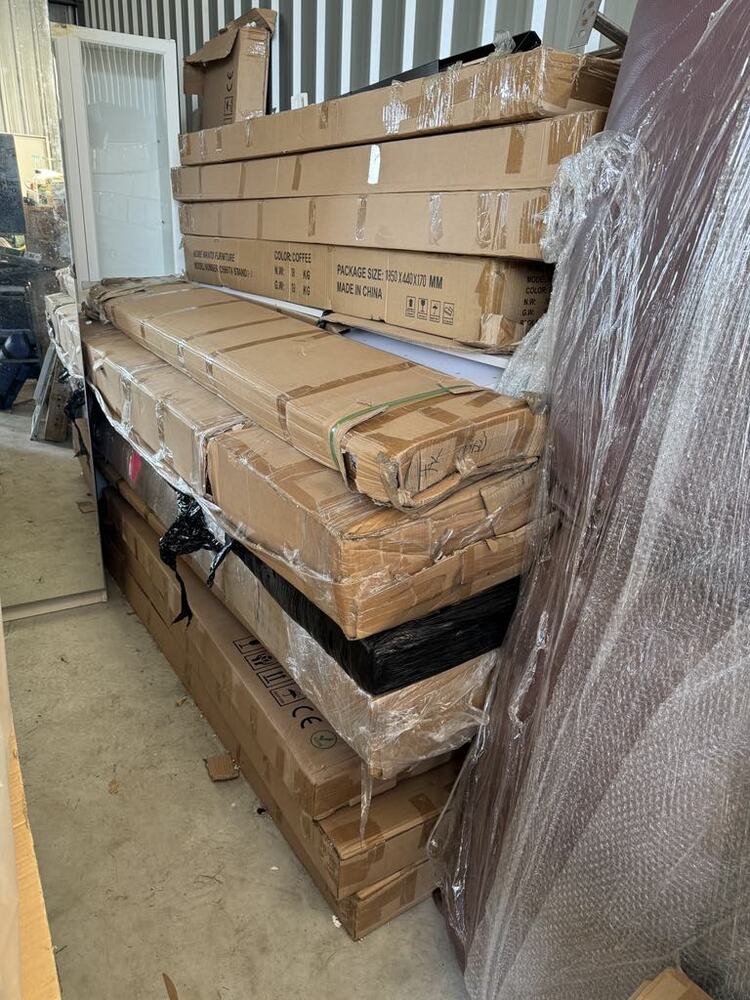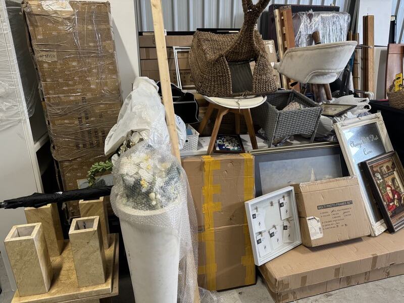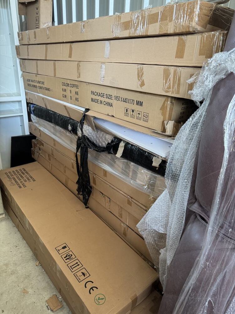 10+ TV units (new in boxes), Display Units, Mirrored Cupboard, Leather King Bed, New Coffee tables in boxes, bed frames, various sized marble tables, homewares, plus heaps more.......