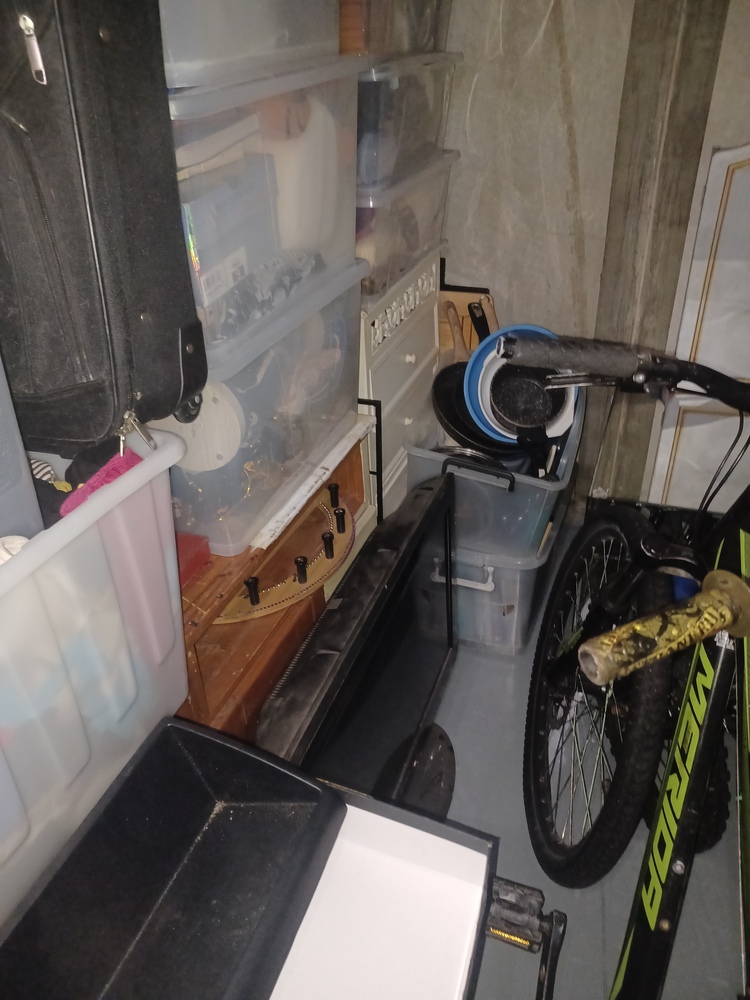 Bikes, Tv, Skate board, boxes and tubs, other items as seen in photos.