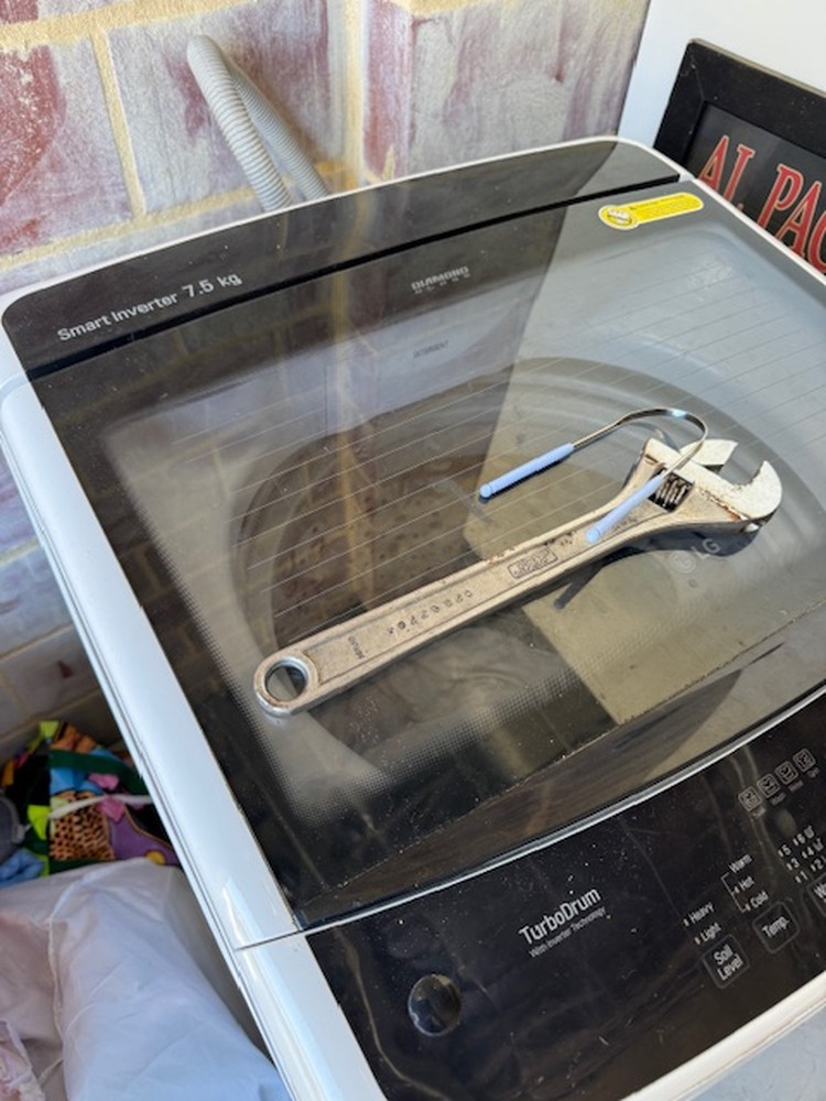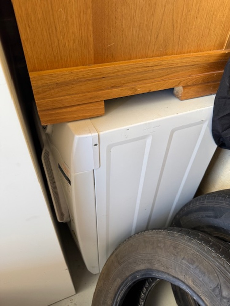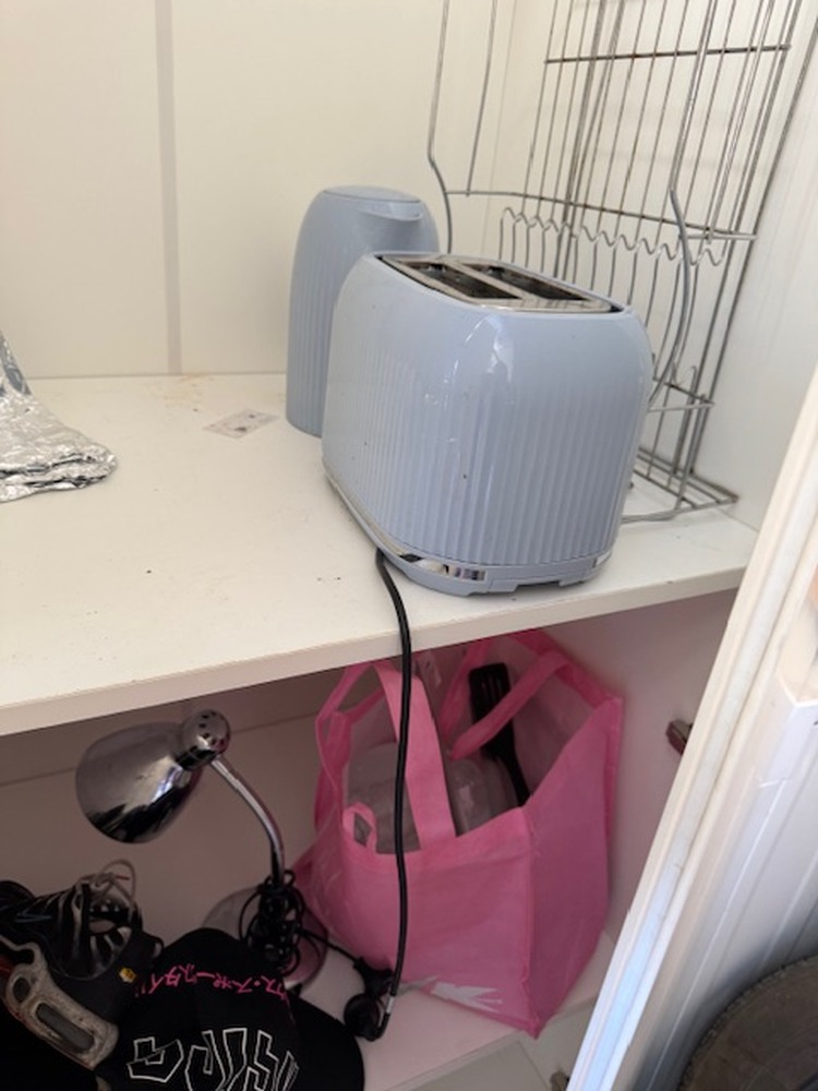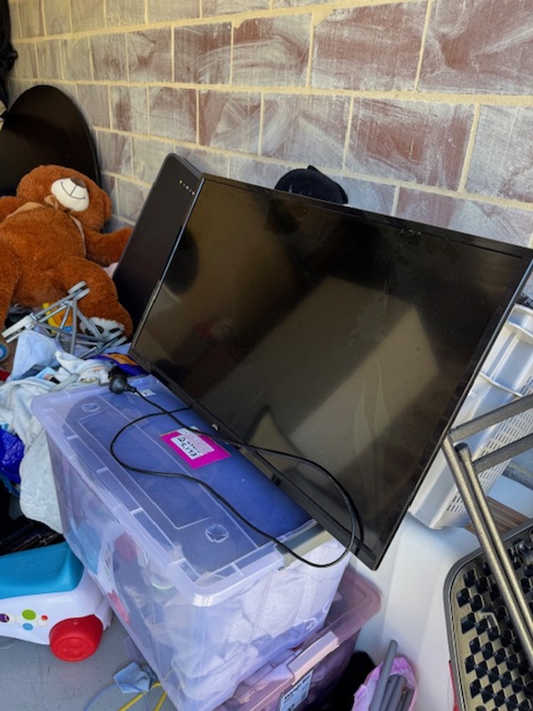 Washing machine & clothes dryer, flat screen TV, table and chairs, good sized wardrobe with lower shelves. Clothes, baby and kids toys