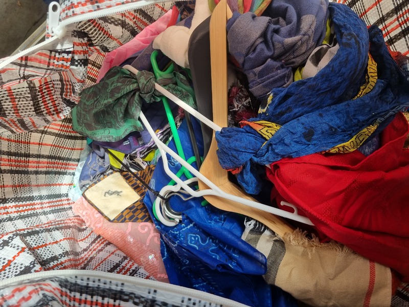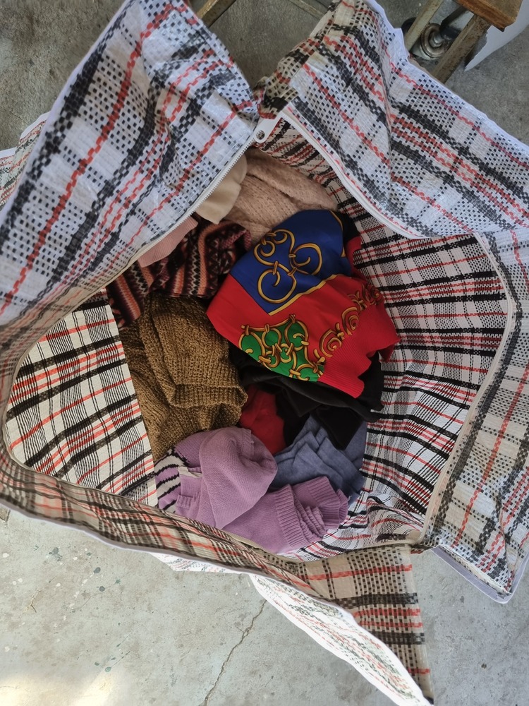 Several large calico bags of mainly kids and ladies clothes (some name brands and in good condition)