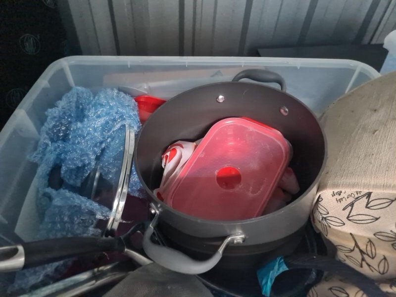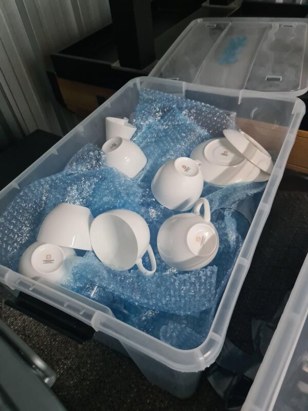 Assorted tubs with Crockery