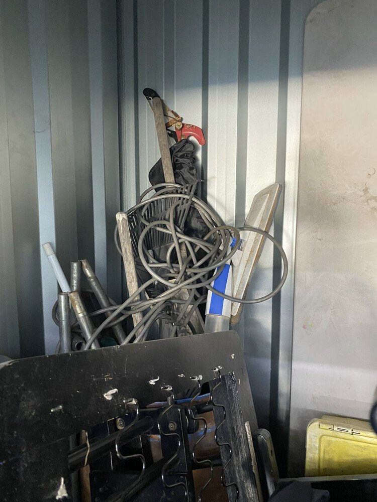 Large Tool Chest, Step Ladder, Television, Trolley, Plastic Camp Table, Camp Chair, Metal frame, Lined Mattress, Pick, Rake, Timber Rocking Chair, Power Lead, Tree Pruner, Sheet, Crates, Assorted Household Items