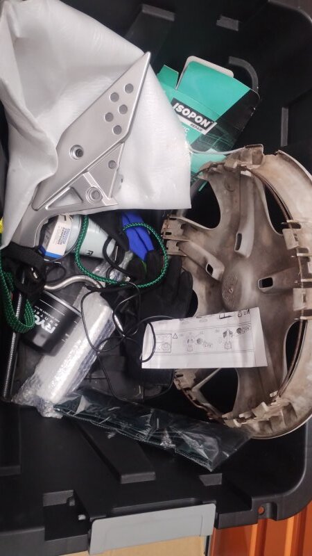 tub of car parts