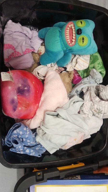 tub of clothes & Toys