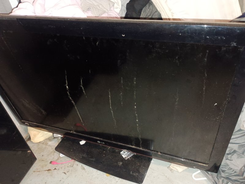 2 X Flat screen TV, Queen size Mattress and base, 2 chest of draws, box of assorted cords, linen, clothing, Elvis magazines