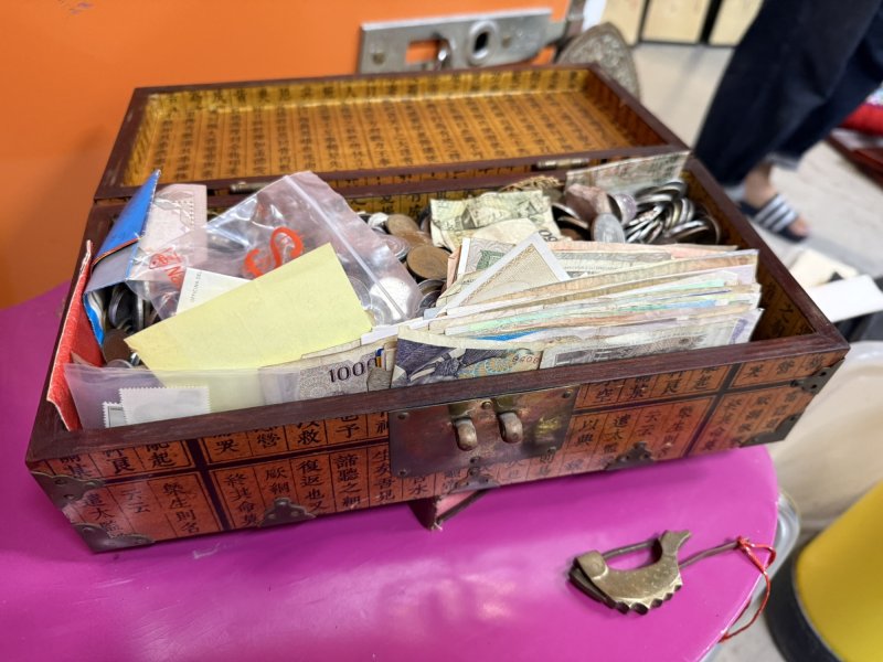 Money box with foreign coins and notes