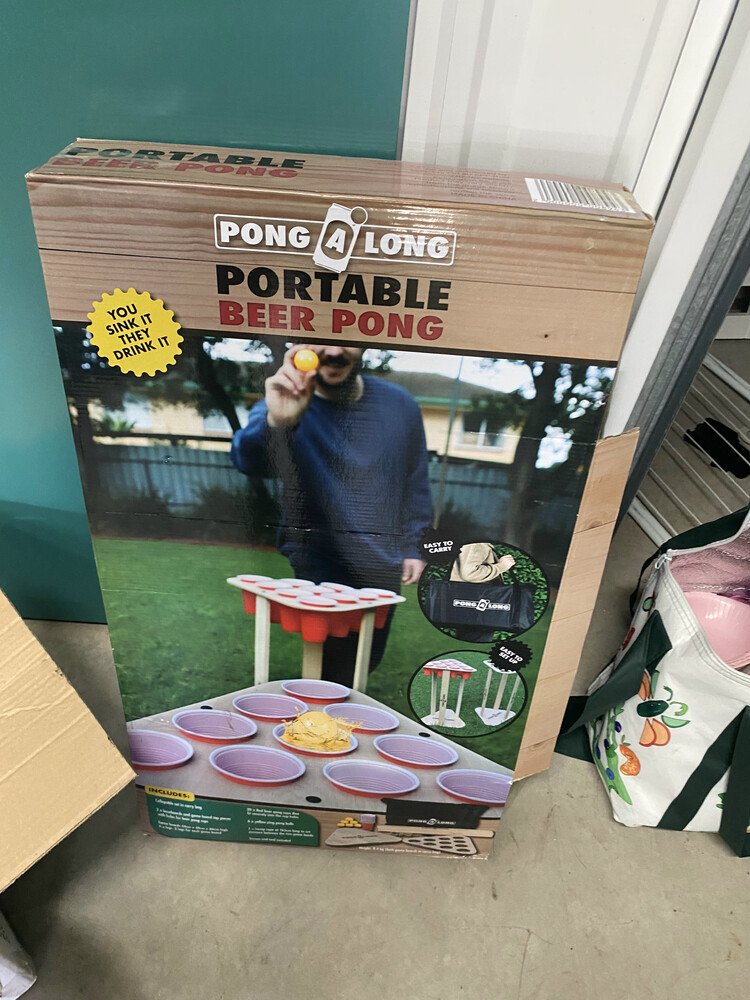 Kayaks2fish Kayak, Golf Bag and 6 clubs, Tall Boy, Side Table, Glasses, Necklace, Photo Frame, Storage box, Assorted Clothing / pillow, White Stand, Drinking Straws, Change Table Mattress, Childrens seated walker, Childrens floatation ring, Drying rack, Part of a Cot Frame, Bag with assorted party items, Portable Beer Pong, Box of Assorted Clothing, Caravan Lead, Flowers, Electric Fan Unit, Butterfly Ornament, Childrens Bouncing Bee Seat, Stuffed Toy, Childrens Driveable Toy Set