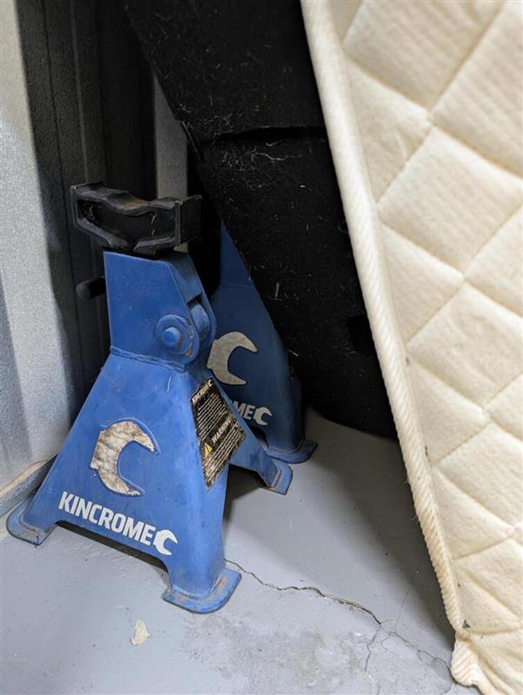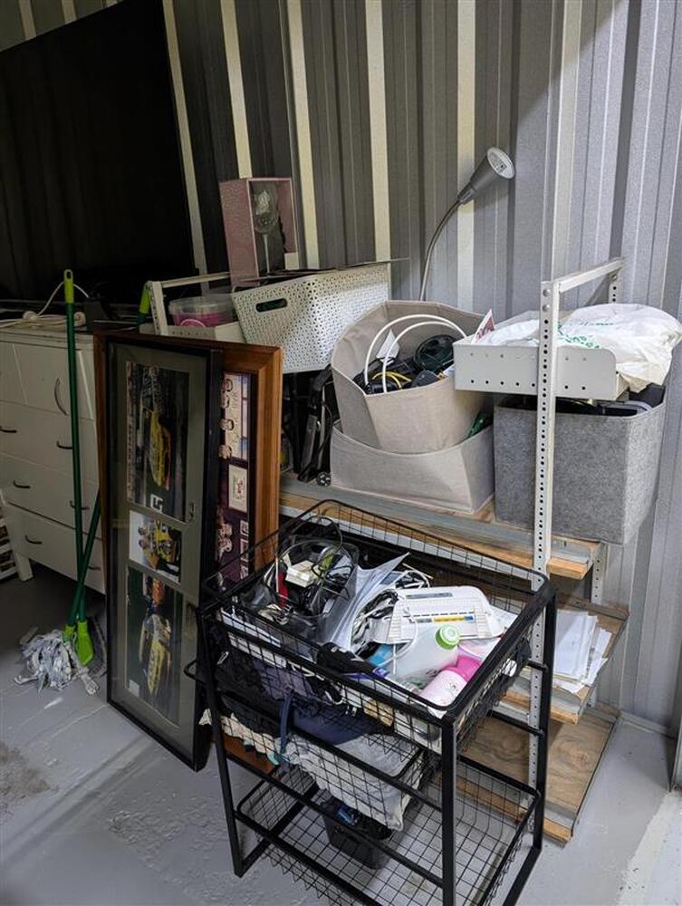 From what we can see inside this unit we have, a TV, shelving, bedframe, Kincrome Ratchet Jack Stands, Cargo Barrier and lots of boxes/bags full of stuff. We could not see all the way in so who knows what else might be in this unit…