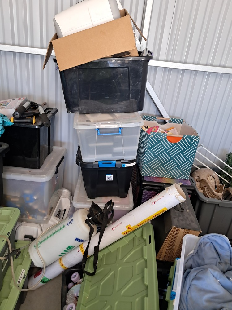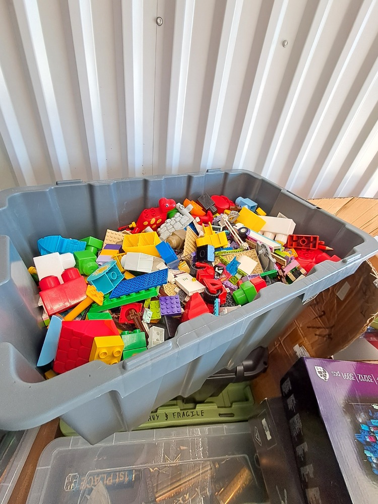 Assorted boxes and tubs of toys, books, kitchen, clothes, linen, DVD’s