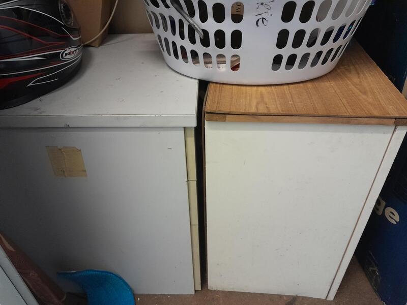 Multiple boxes of household goods, Small cabinet/drawer units.