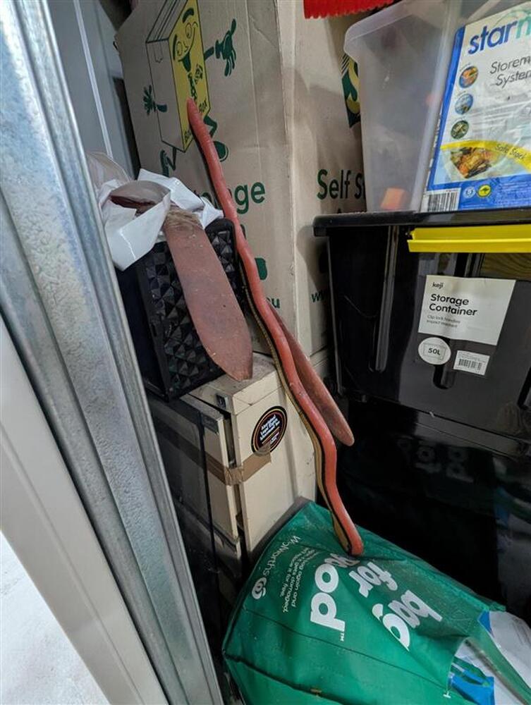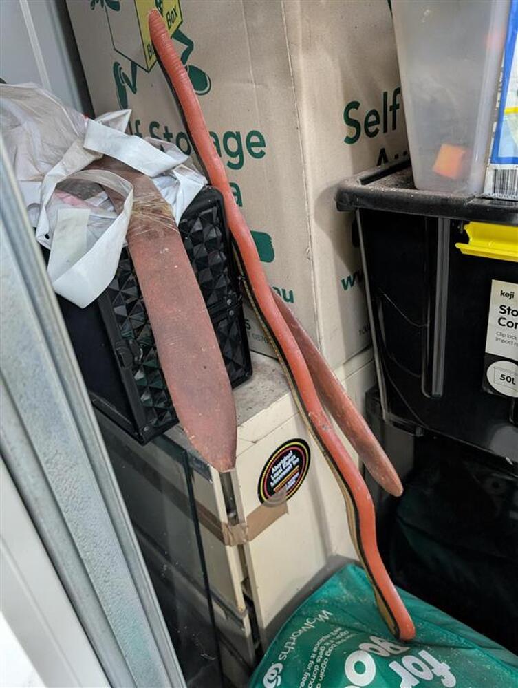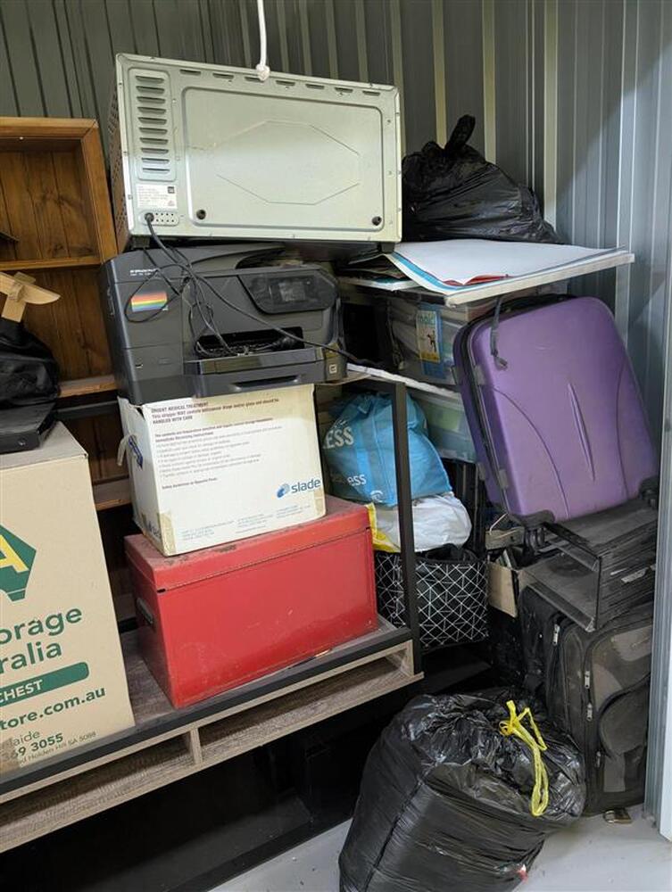 From what we can see inside this unit we have, a bookshelf, TV cabinet, a printer, microwave, suitcases and lots of boxes/bags full of stuff. We could not see all the way in so who knows what else might be in this unit…
