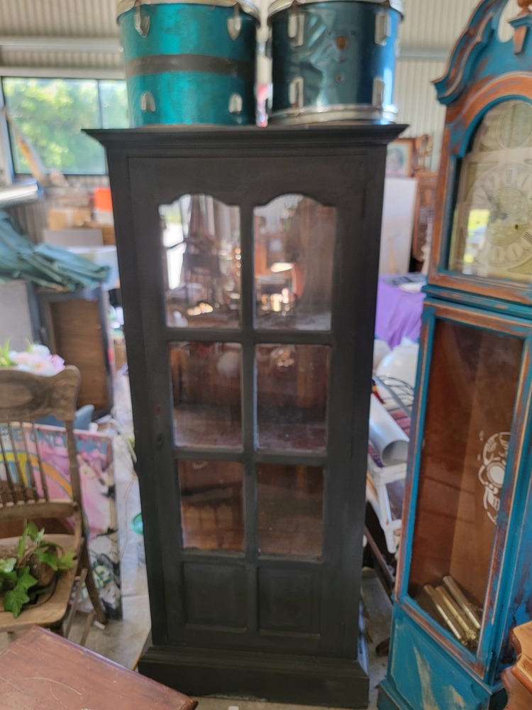 60. Black display cabinet – glass missing on one side .