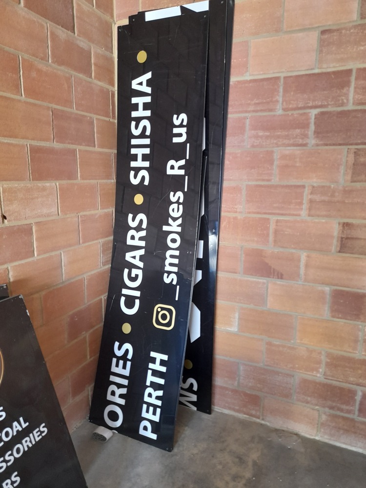 Large rug, shelves, 2 x business signs, signs for shop front