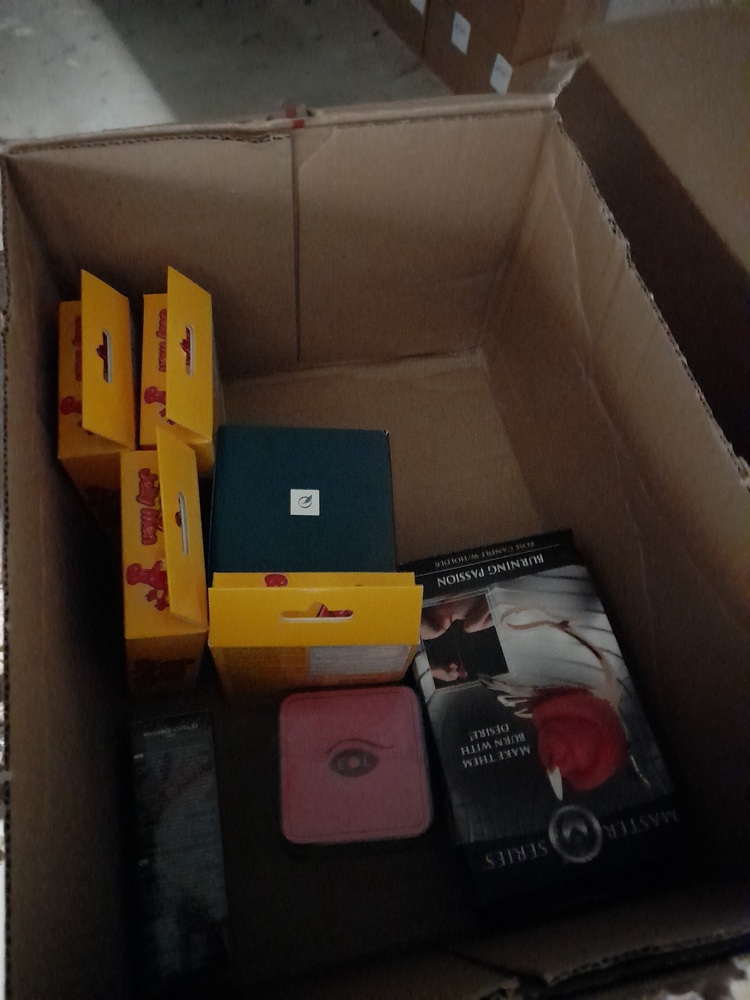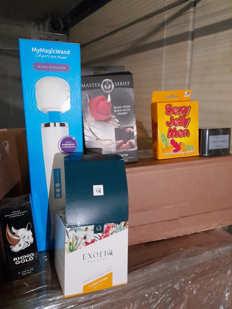 Several boxes containing Adult Products including Condoms, Lubricant, Toys, Handcuffs, Vibrators, Candles, etc.