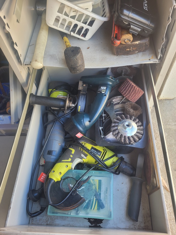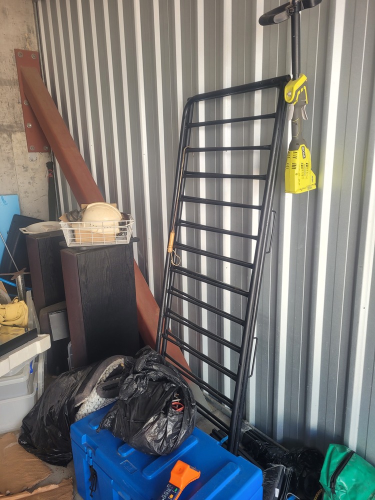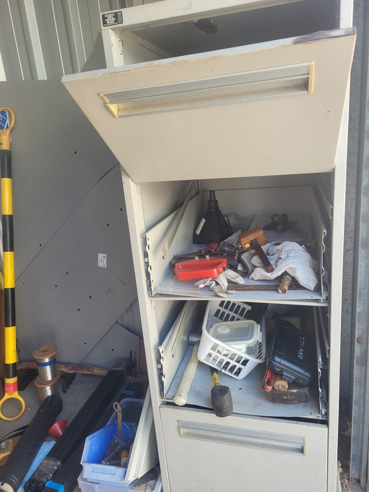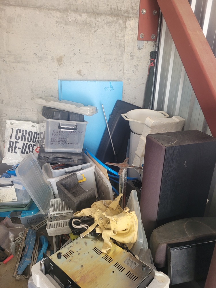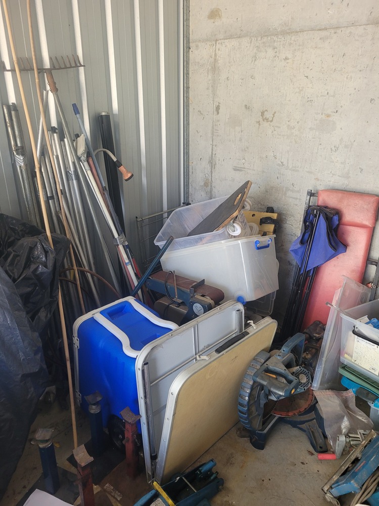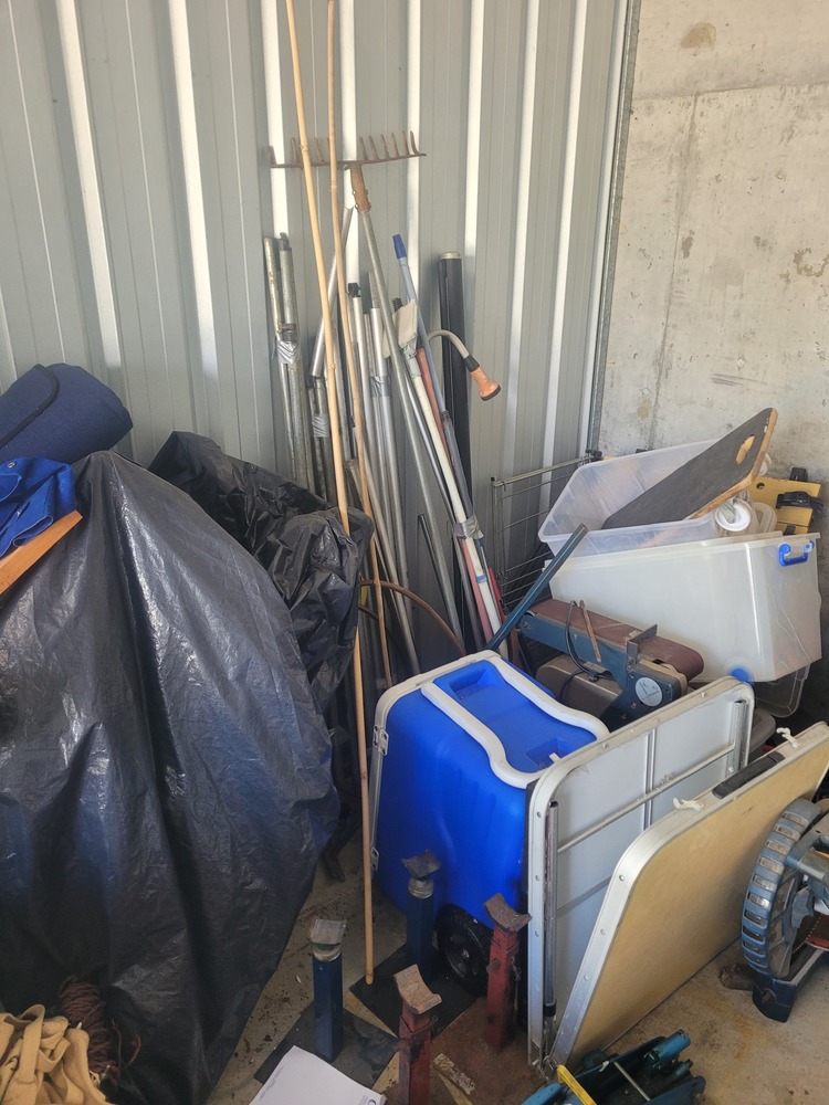 3.0m x 6.0m unit containing tools and camping equipment, 4wd recovery equipment, stereo gear