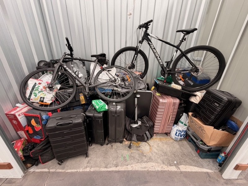 Additional loose household items stored behind luggage