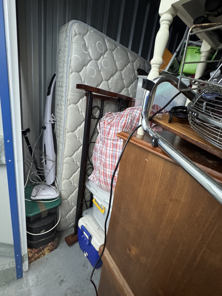 - dismantled bed frame and mattress