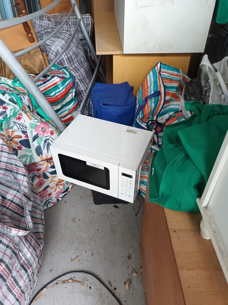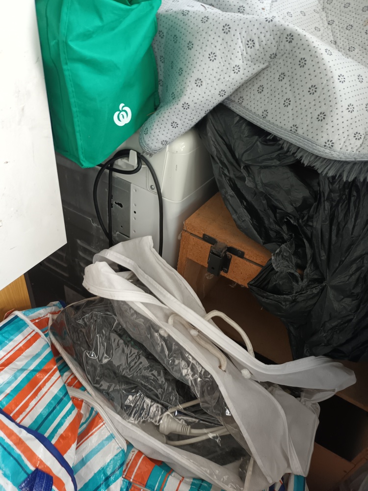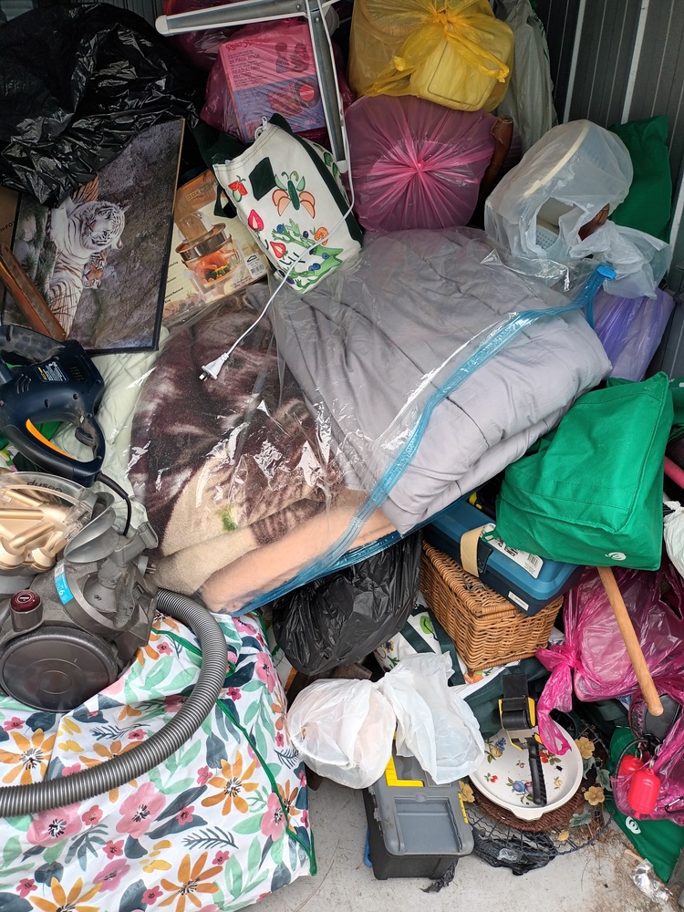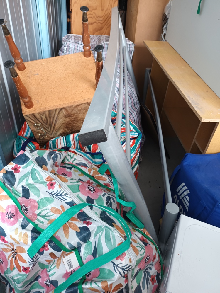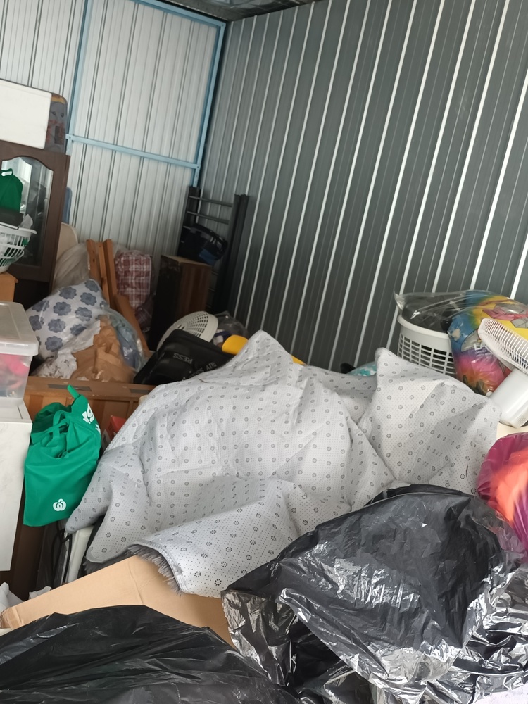 This unit contains a mix of misc. household items such as but not limited to bed frames, mattresses, drawers, fridge, blankets bags of misc. items. brooms and other such equipment, kitchenware, speakers a tv monitor, box of dolls and so forth