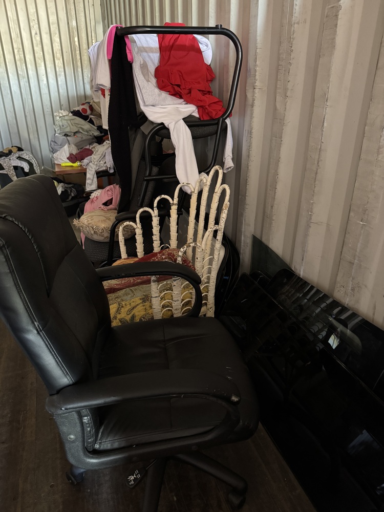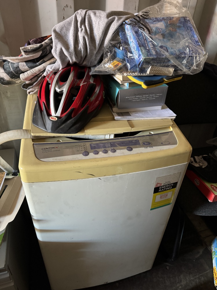 Household goods and furniture, including desks, very solid table top, plant pot, heater, chairs, clothes, kitchenware. washing machine, filing cabinet, etc. See photos and video for details
