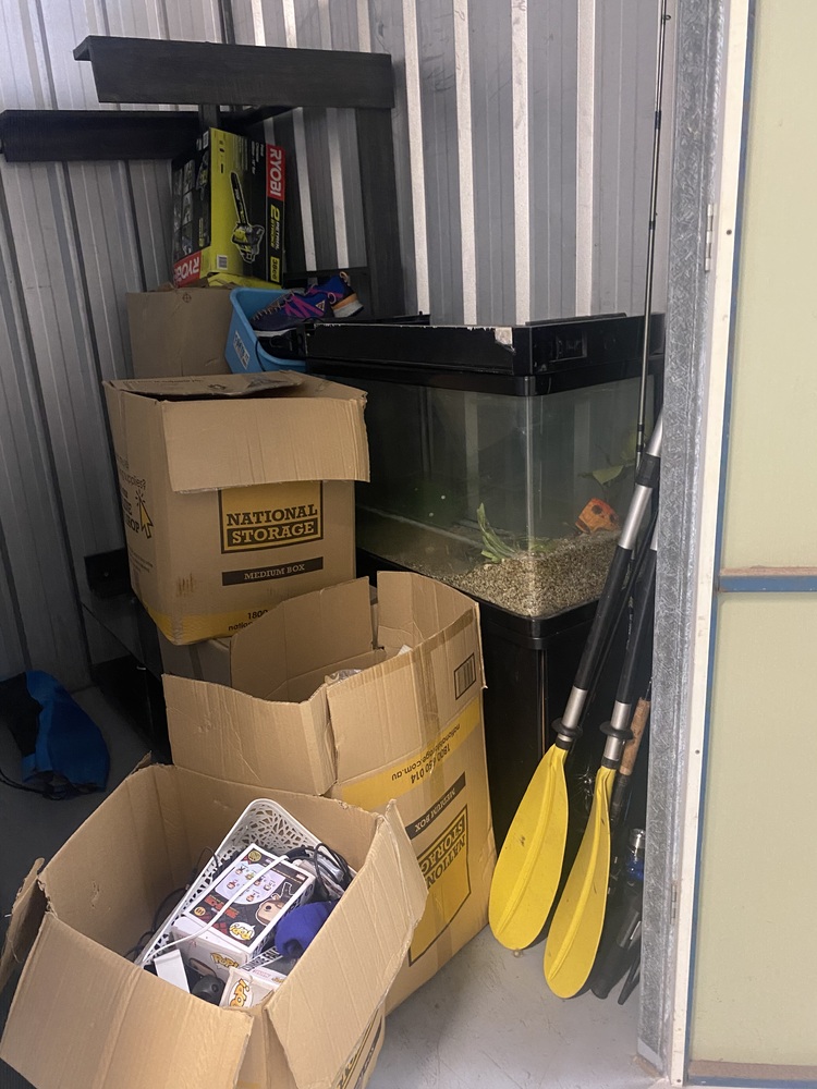 T.V, Mattress, Fish tank, oars, boxes