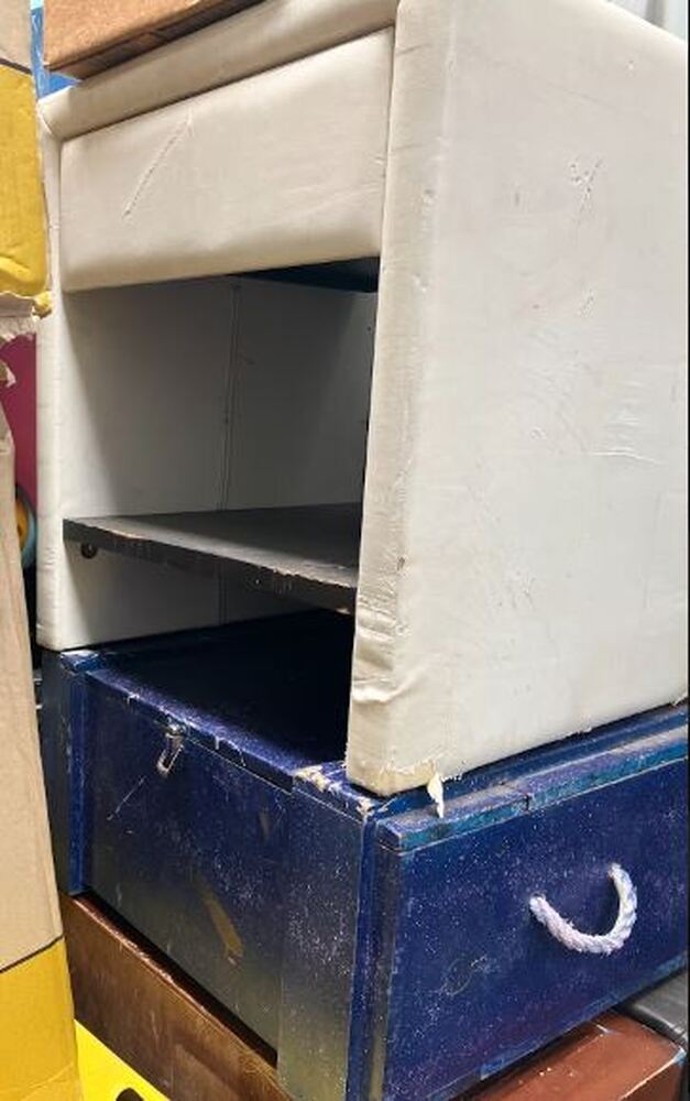 White bedside table (stained, dirty)