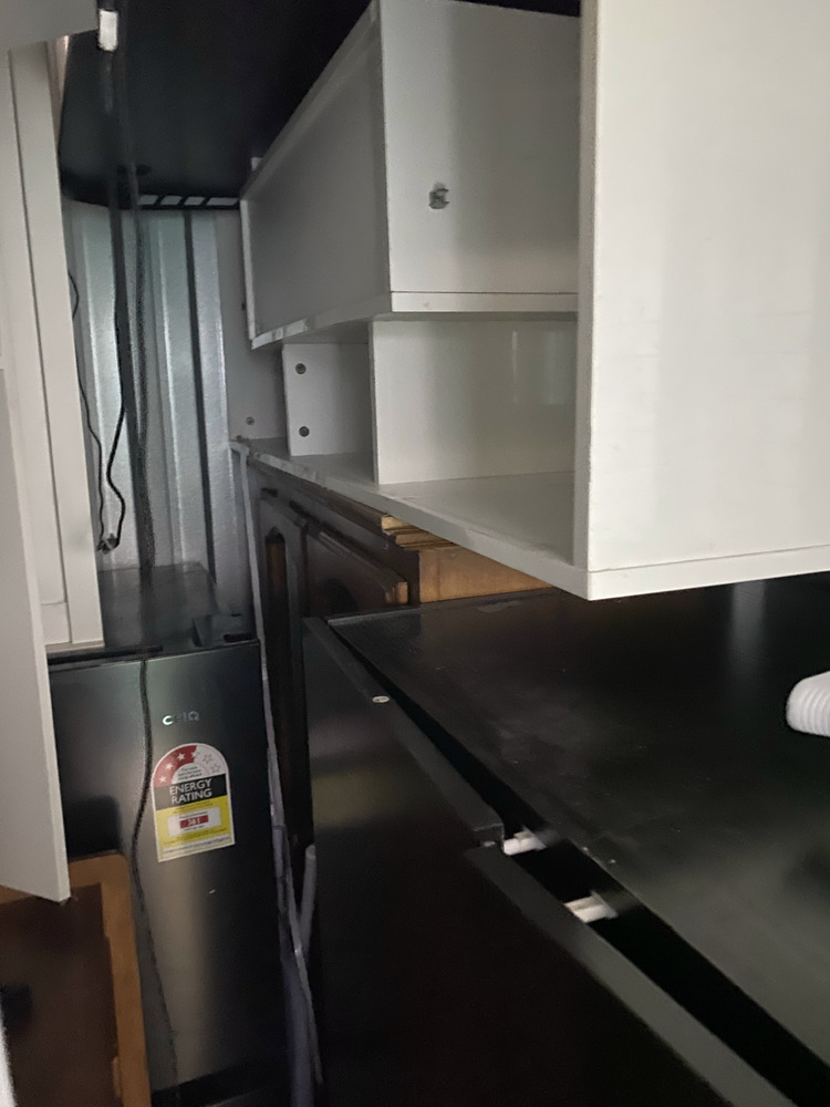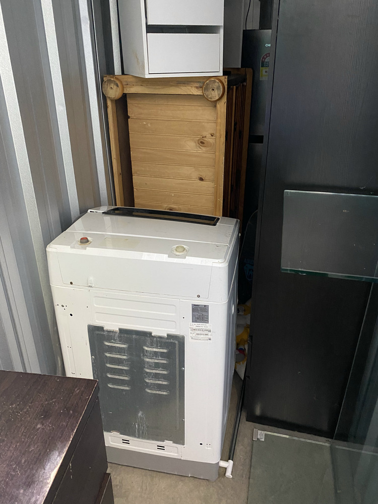 Fridge, Washing Machine, 2 Surfboards (One Foam), Glass Coffee Table, Timber Tallboy, Skateboard, 4 Helmets, Tall Timber Cabinet, Black Pantry Cupboard, Desk, White Cabinet, Brown Tallboy, 2 Televisions (One cracked screen), White Low Line Cabinet