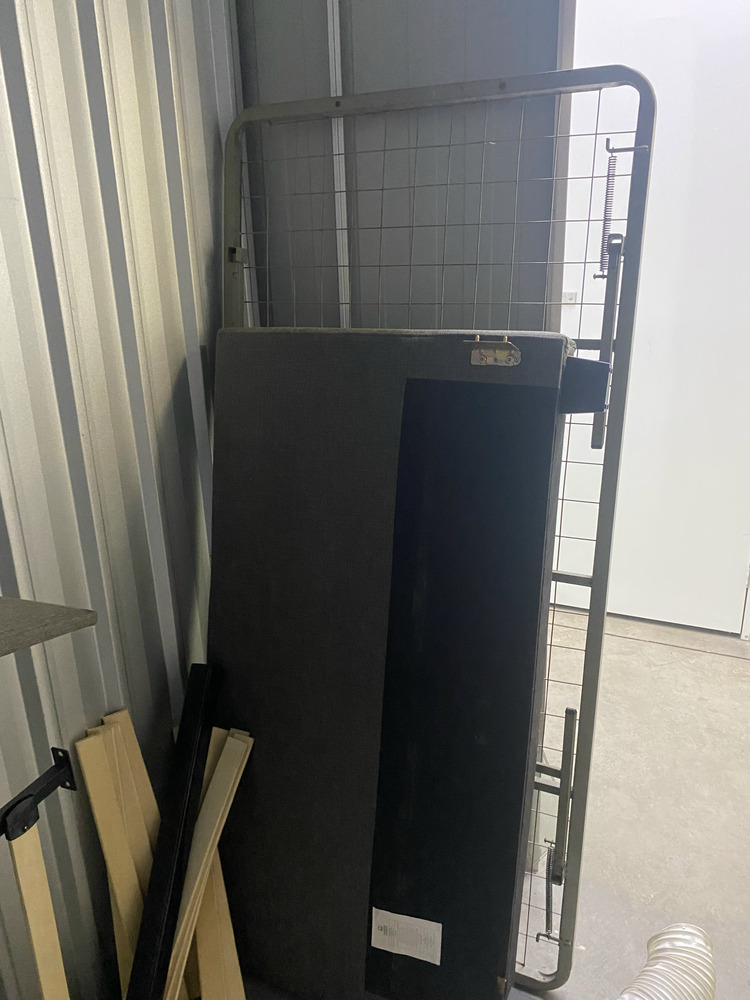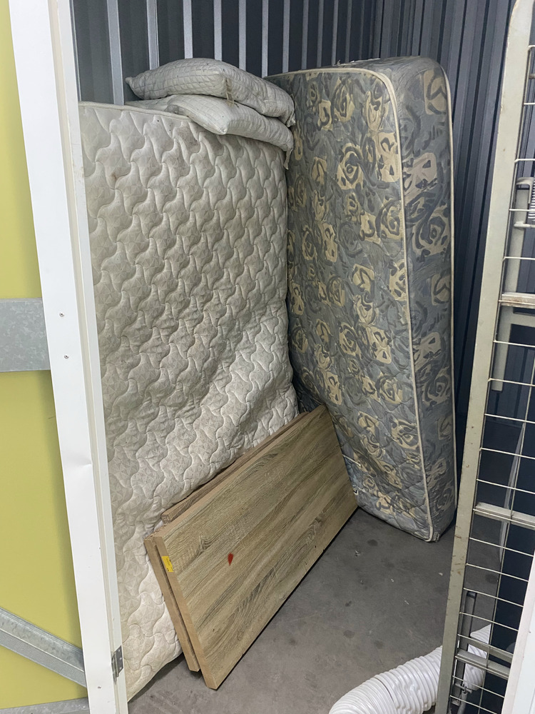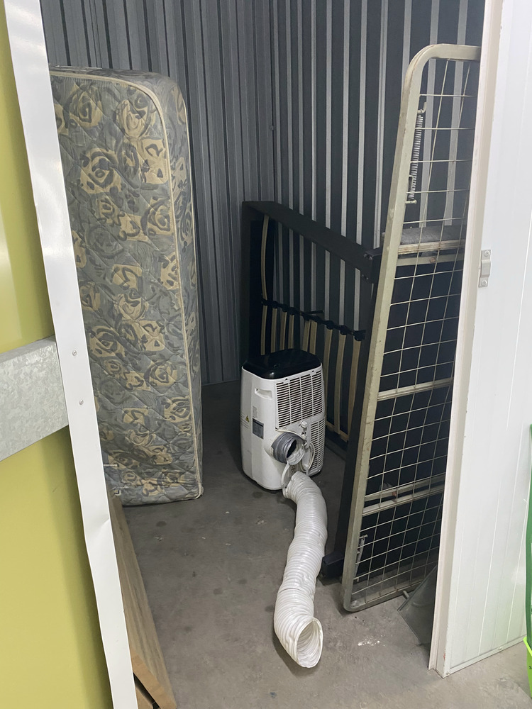 Evaporative Cooler, Metal Bed Frame, Timber Bed Frame, 2 Pillows, 3 Matresses, 2 timber shelves