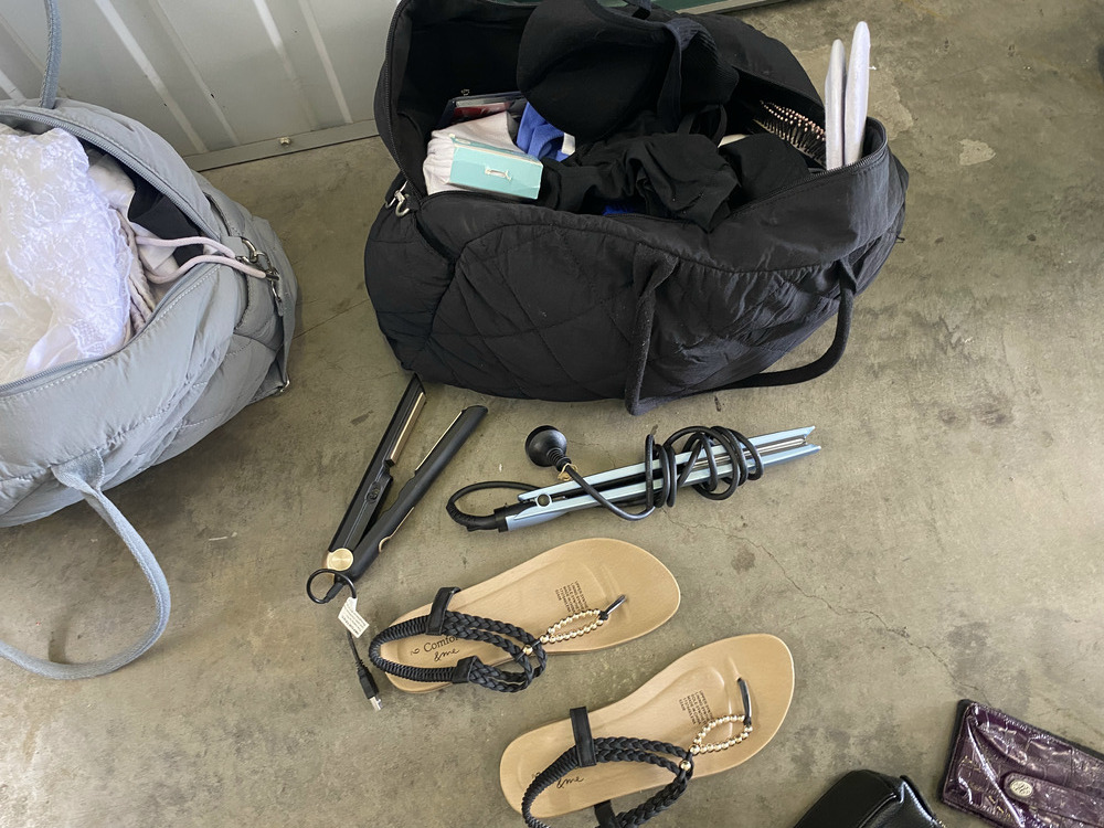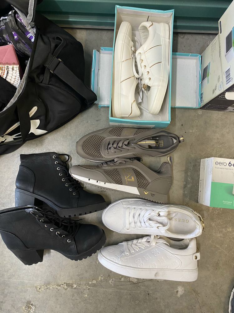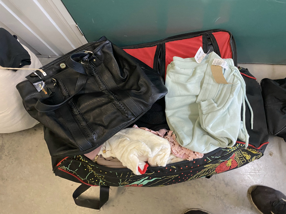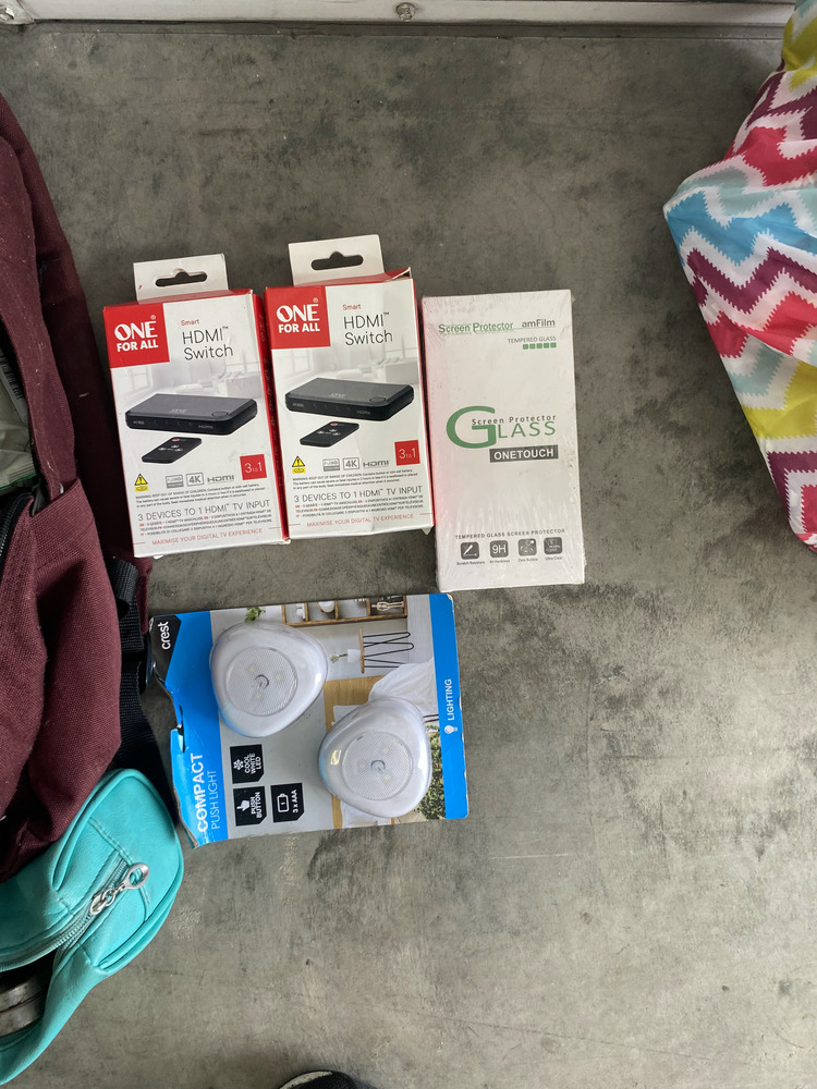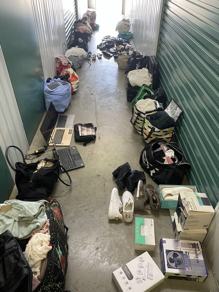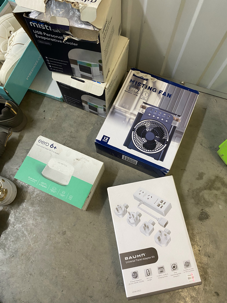 Misting Fan, 2 Small Portable Dehumidifiers, Bauhn Universal Travel Adaptor Kit, Wifi Router, 5 Pairs of Shoes, Bag of Clothing, 4 x Grocery Bags of Clothing, Grocery Bag with Kitchen Items, Suitcase of Clothing, Backpack with clothing, Handbag with Clothing / Toiletries, Handbag with Clothing, Assorted Handbags and Purses, 12 x Bags of Clothing, Grocery Bag with Toiletries, Mobile Phone Glass Protector, 2 Small Lights, 2 x Hdmi Switches, Backpack with Toiletries, Grocery bag with clothing / washing liquid, Ladies Sandals, 3 x Hair Straighteners, Apple Laptop, Acer Laptop, Thinkpad Laptop, Ipad and case, Blanket, 2 Skateboards, Grocery Bag of Toiletries, Box with Shoes / Toiletries / Clothing, Plastic bag of clothing, Suticase with clothing, 2 Hampers with Assorted Clothing, Sign, Golf Bag and Clubs, Umbrella, 2 x Boxes of Clothing.