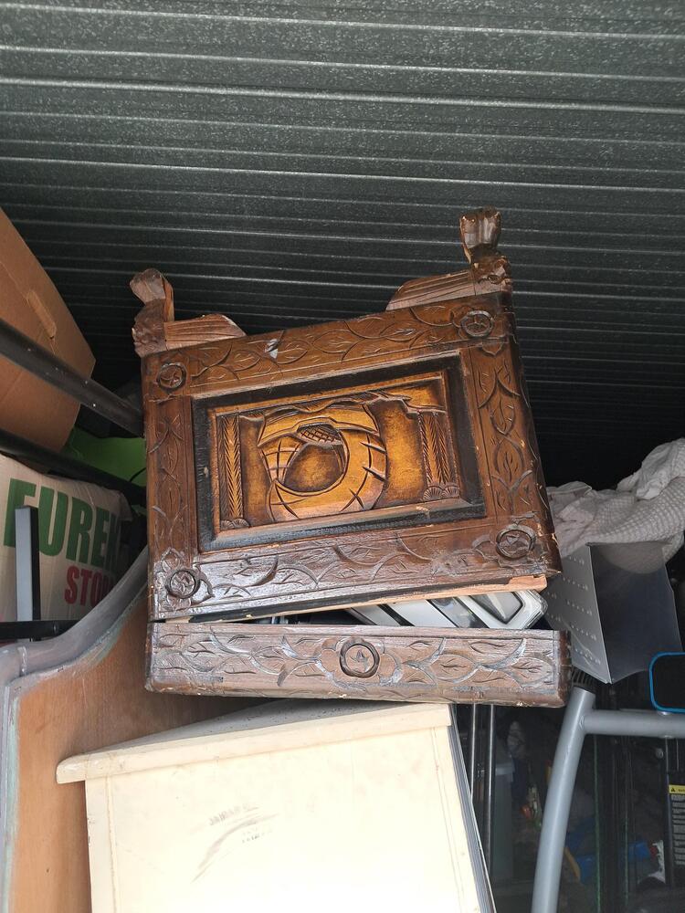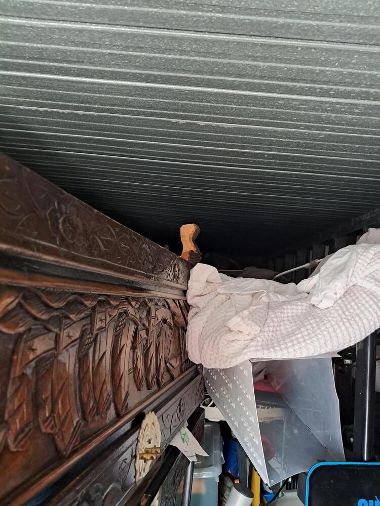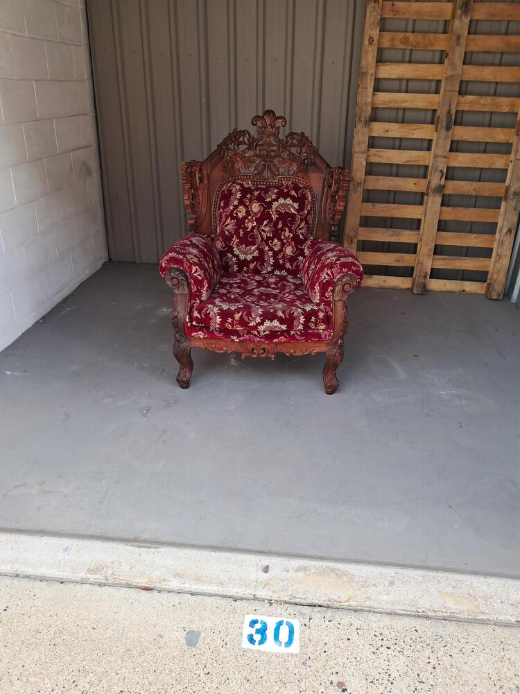 6 x 3 metre unit FULL of all household items. That can be seen, there is beds, mattresses, camphor chest, shelving and a massive and very heavy antique looking upholstered chair.