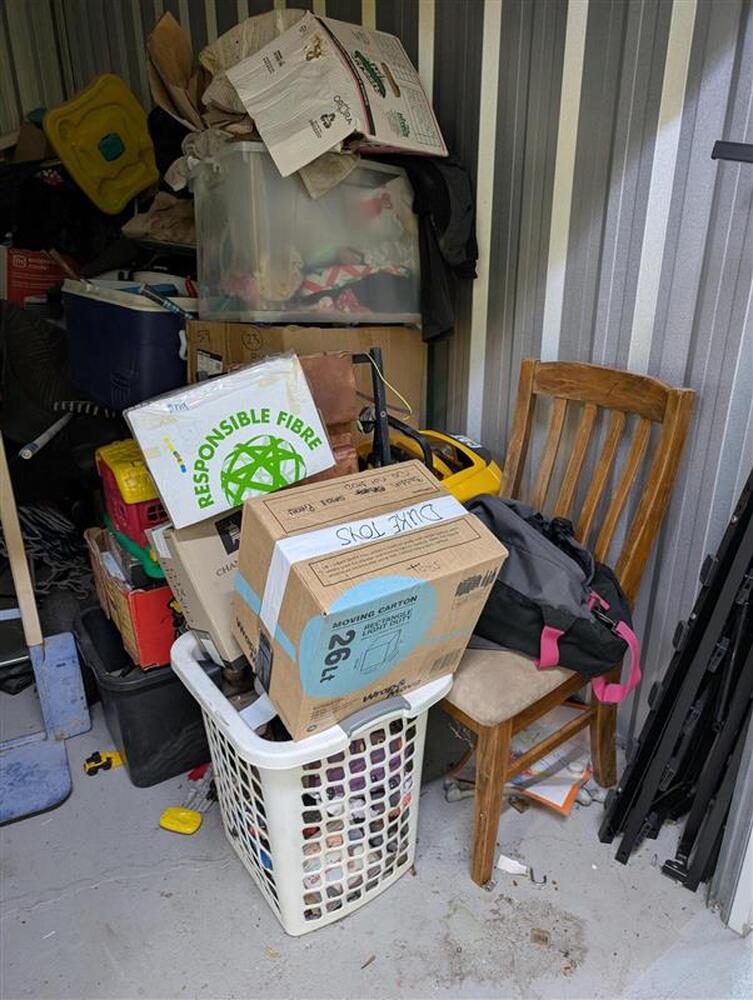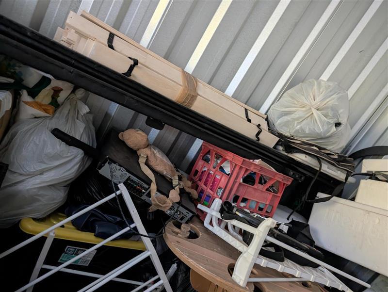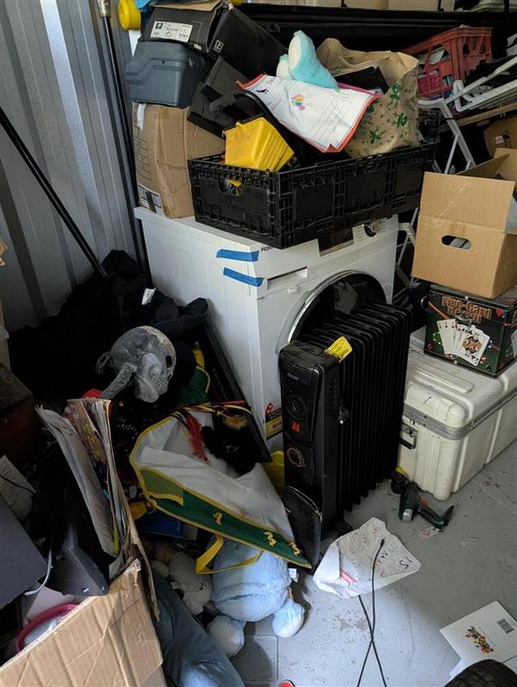 From what we can see inside this unit we have, a Washing Machine, a heater, dolls house, kids' toys, a car mirror and lots of boxes/bags full of stuff. We could not see all the way in so who knows what else might be in this unit…