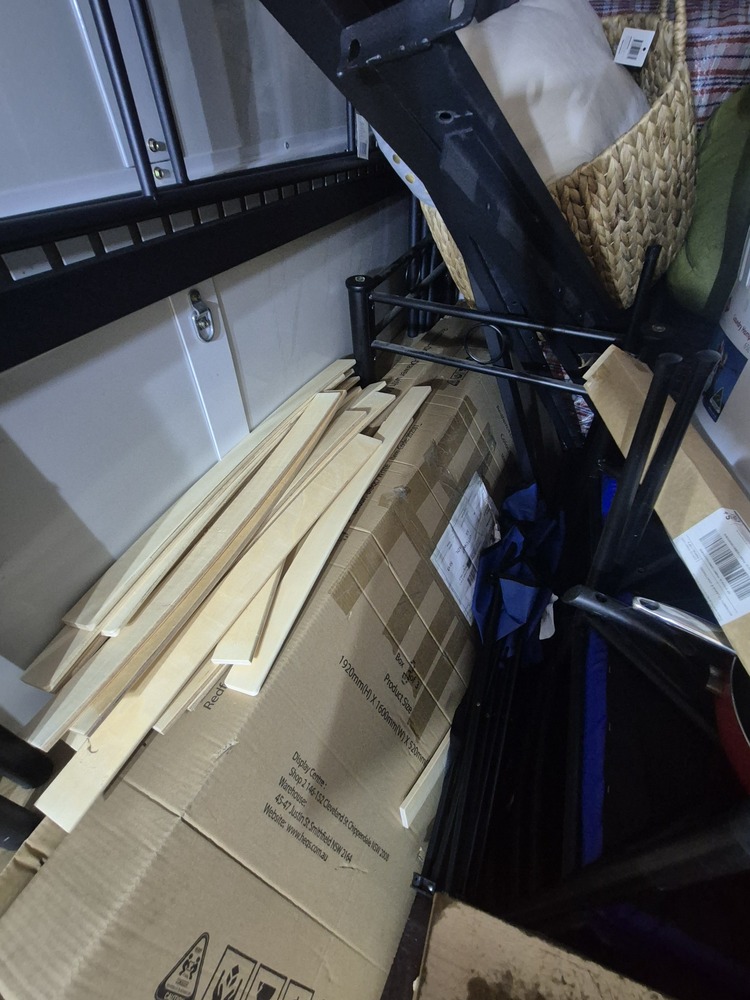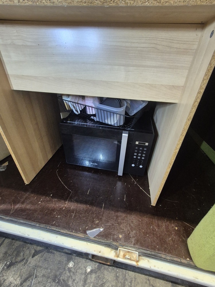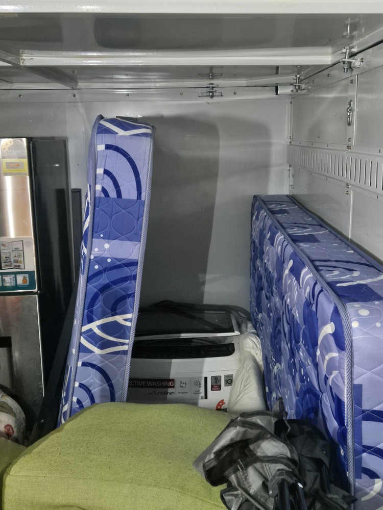 Fridge, washing machine, couch, mattress and bed frame. Various pieces of furniture, microwave.