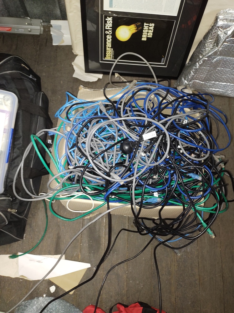 Box of assorted power cables