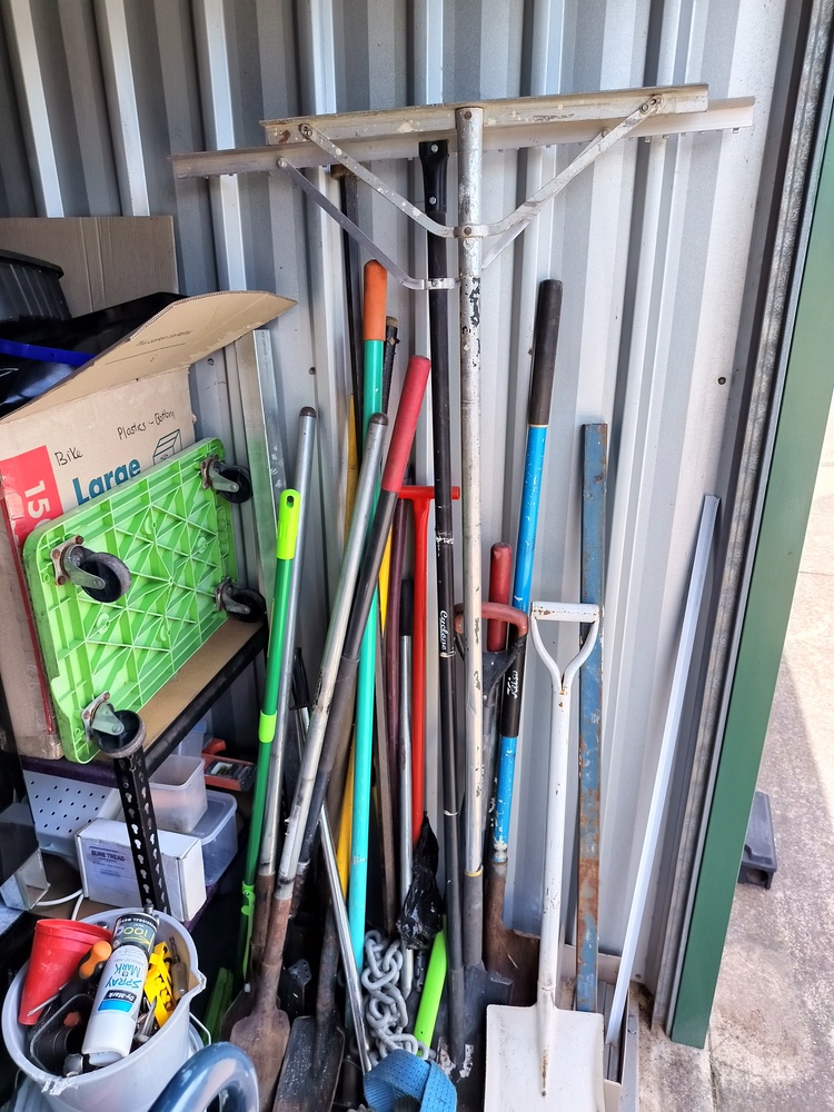Hand tools - landscaping equipment, shovels, trollys, wheelbarrow, post hole digger, screeds