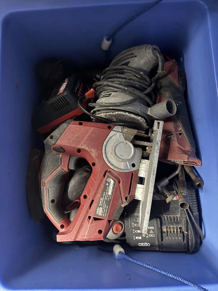 Large amounts of tools including grinders, drills, sanders etc.