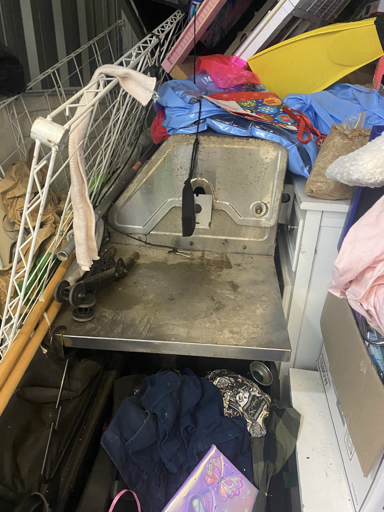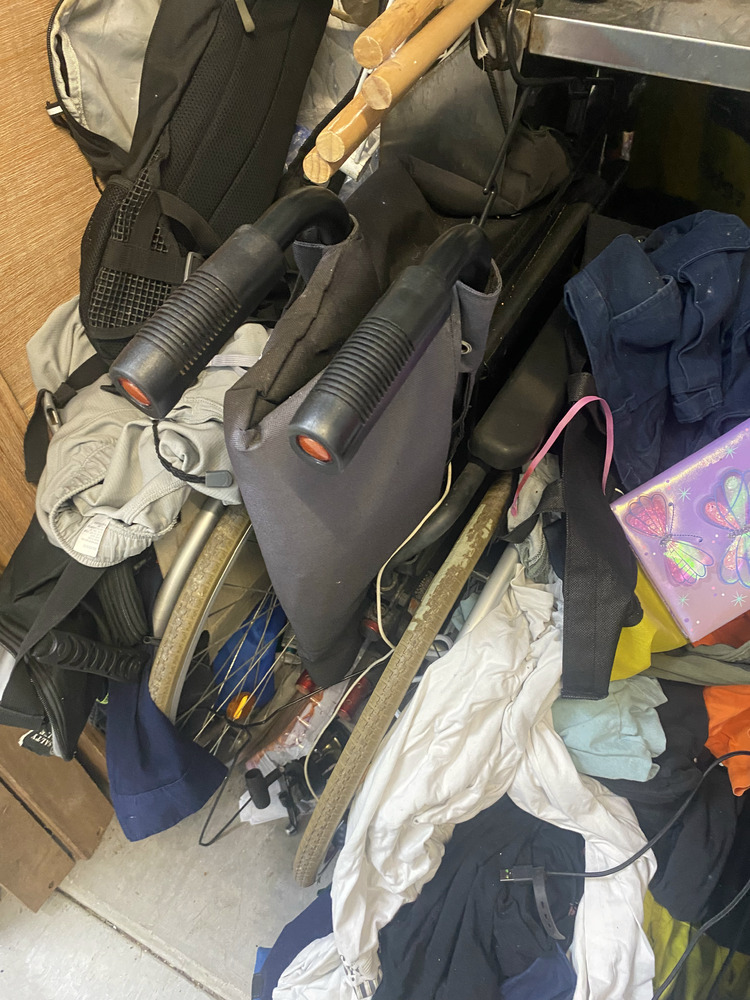 Television, Caribbee Hydration Bag, Bed Frame, BBQ, Metal Racking, Mattress, Cane Chair, Assorted Childrens Toys, Assorted Clothing, Tallboy, Side Table, Shelf unit, 2 x Fox Floats, Wheelchair, 2 x Fishing Rods, 1 x Fishing Reel, Junior Dive Set, Boogie Board, Artificial Leg/Foot + 2 base plates, Container of Pots / pans, 6 Person Tent, Marquee Item