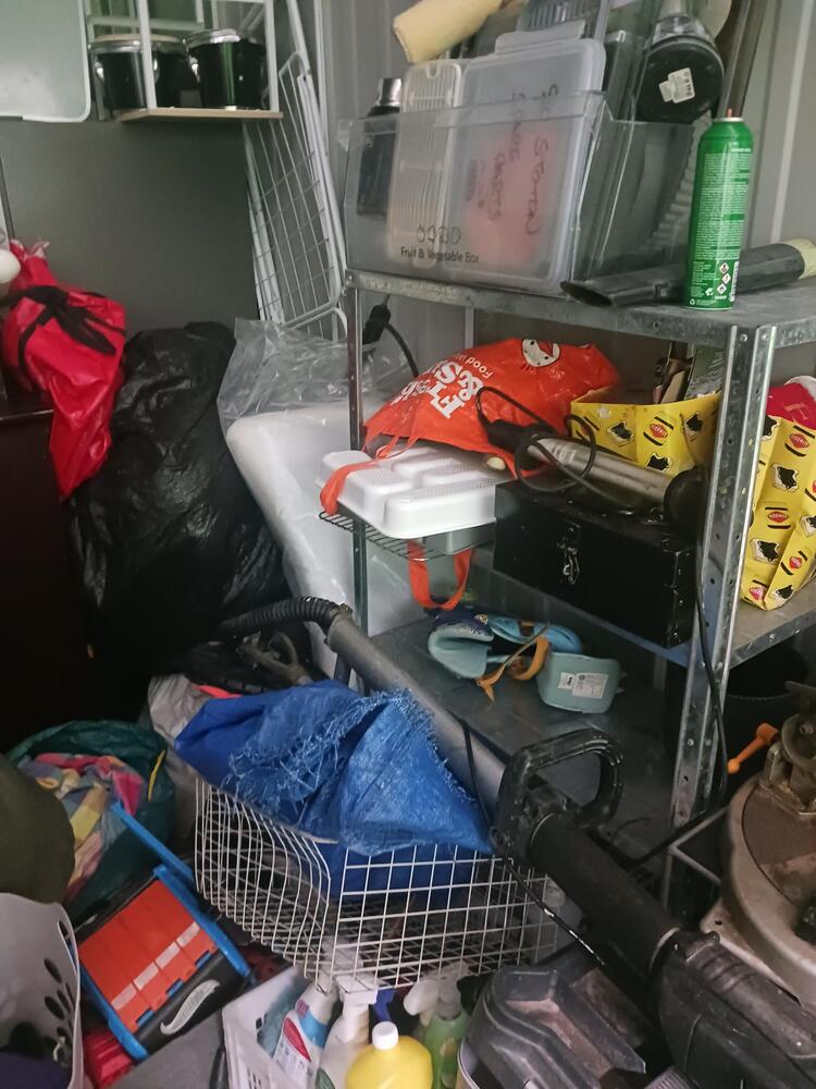 * Multiple containers and boxes of tools, DVD's, car parts, clothing, etc.