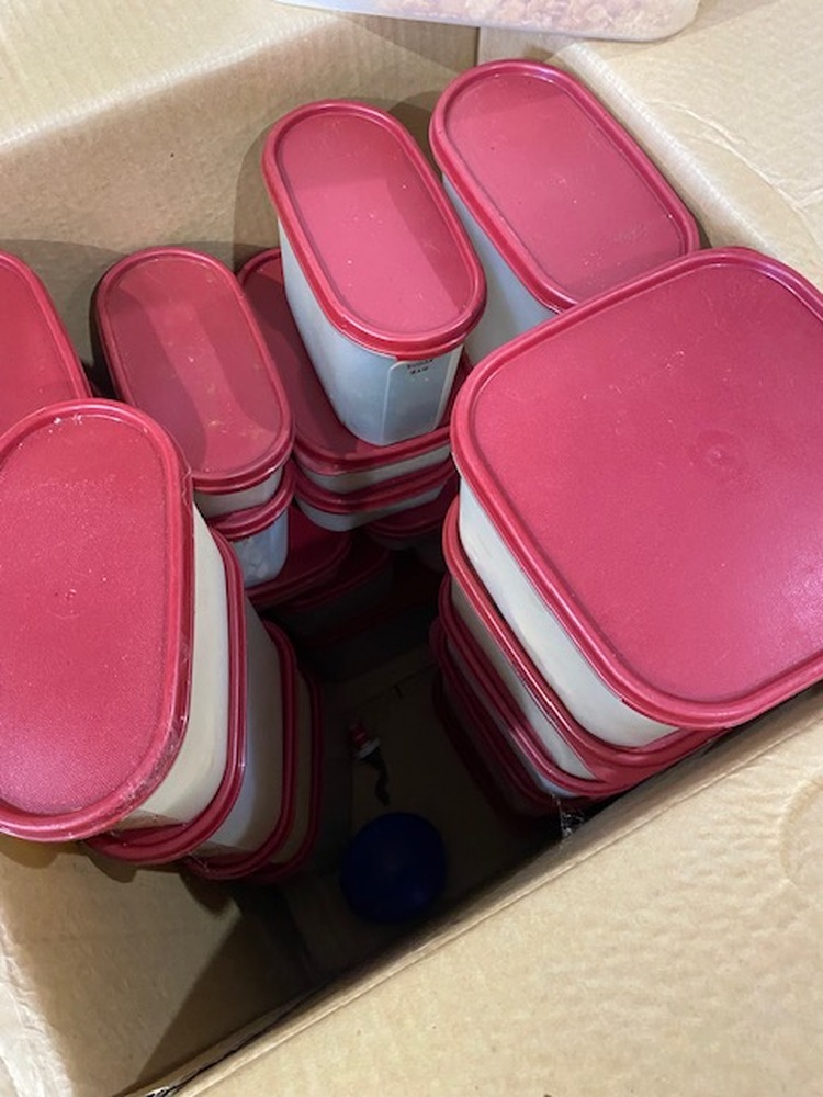 Box of Tupperware containers