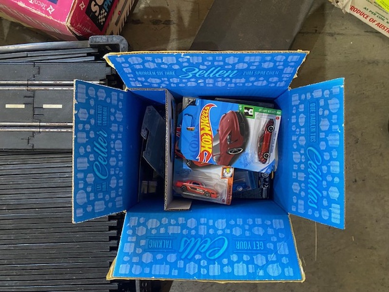 Box of Hot wheels cars