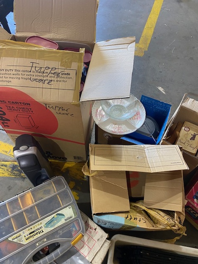Asst boxes of household items