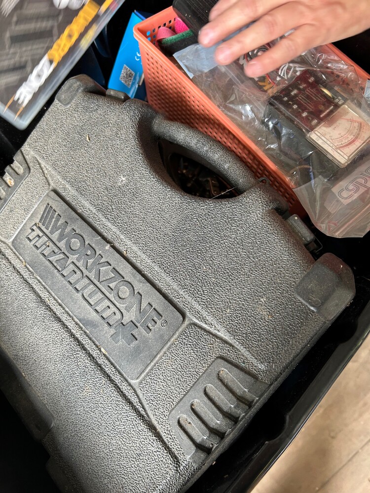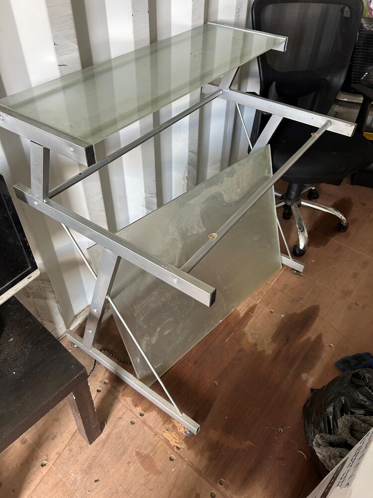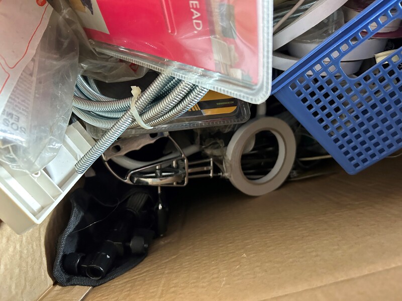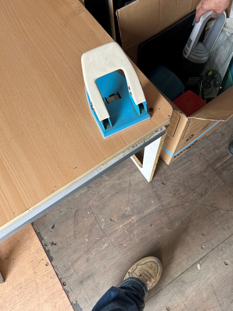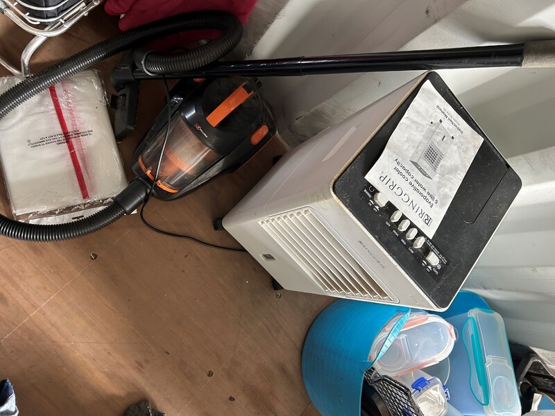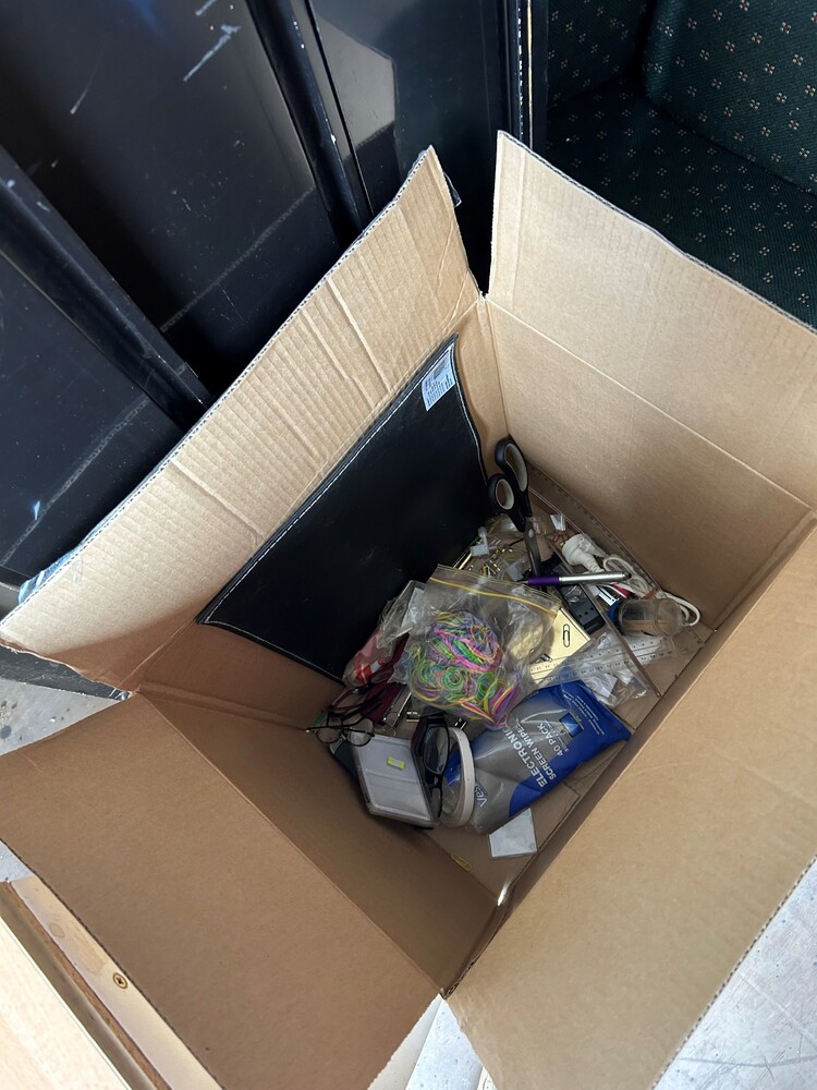 Assorted Stationery , Head Phones, 5 boxes assorted goods,Drill Bits and assorted tool, computer desk, box of Road /map books, 1 box electrical bits n bobs Evaporative cooler