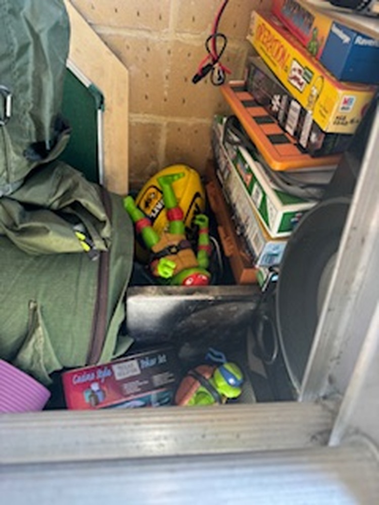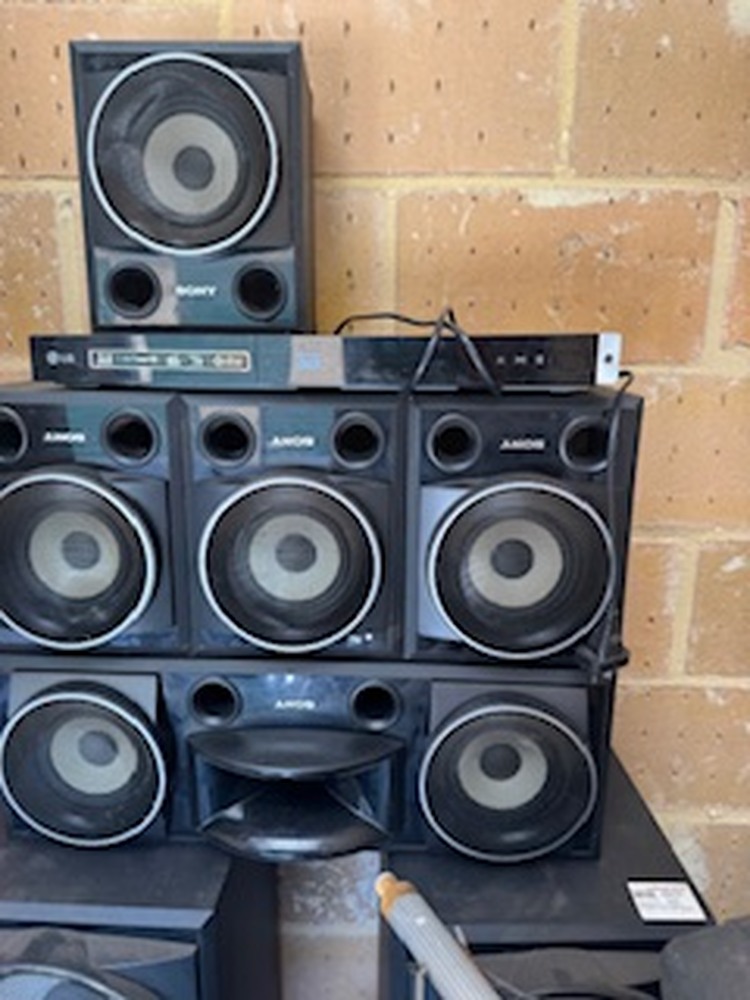 This unit contains: Extendable ladder, Sony stereo system with loads of Sony speakers, Ozito ARC welder and sander, TV and cabinet, swag with backpack, Nerf guns, board games, BlyRay 3D dvd player and more