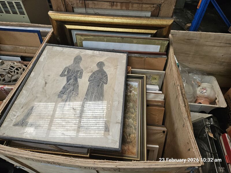 - 2 large and 1 * small crates of paintings, prints, photographs