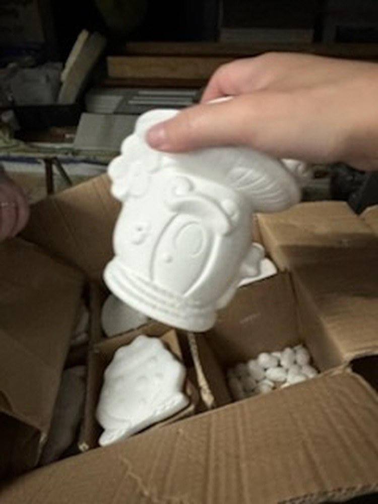 Boxes of plaster pieces